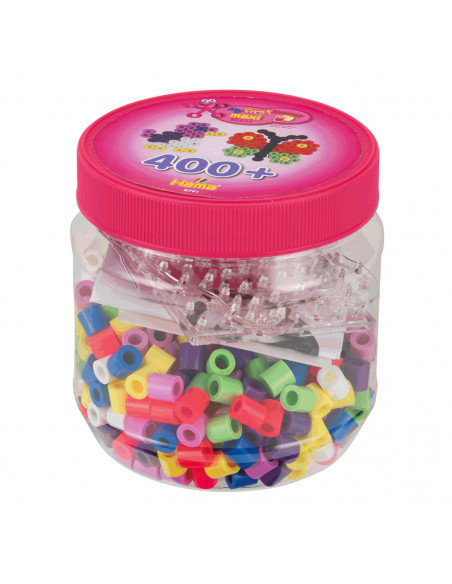 Met de roze Hama Strijkkralenset Maxi in Pot kun je direct aan de slag! Alles wat je nodig hebt zit in de pot: 400 kleurrijke Maxi strijkkralen, 2 strijkkralenbordjes (vierkant en vlinder), gekleurde voorbeeldpatronen, instructies en strijkpapier. Leg de voorbeeldpatronen onder het vierkante bord en maak de figuren na. Of laat je fantasie de vrije loop en maak met de Hama Strijkkralenset Maxi in Pot een eigen creatie!
