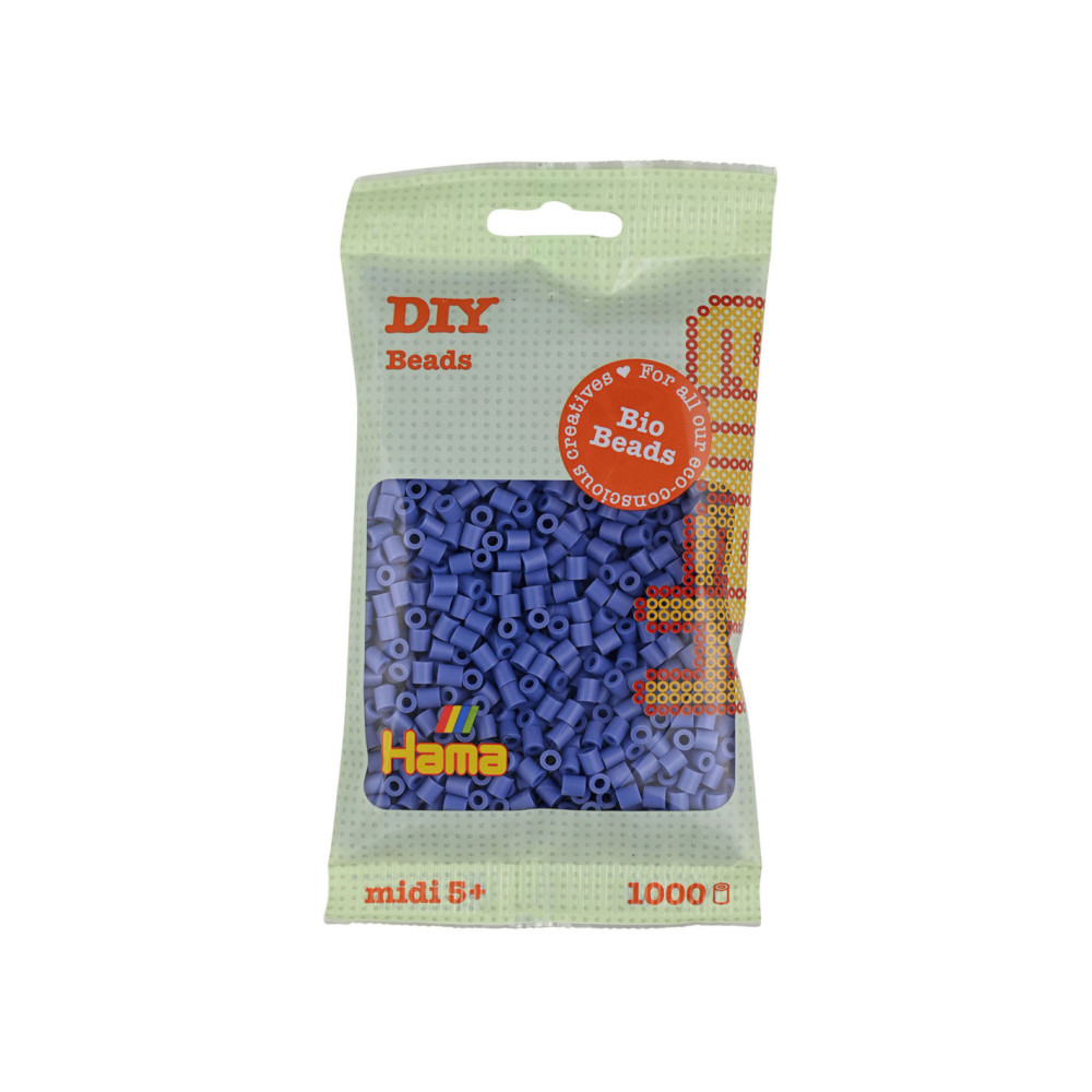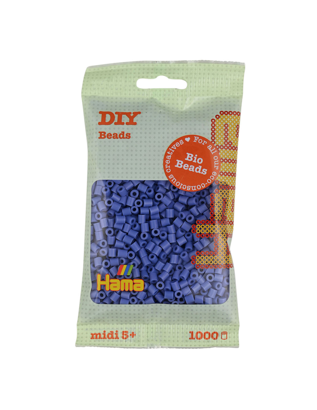 Zakje met 1000 Hama Bio Beads strijkkralen in de kleur lavendelpaars. Formaat: midi. Geschikt vanaf 5 jaar.