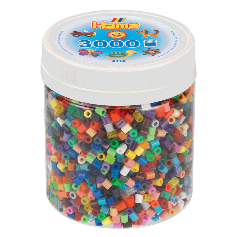 Creëer vele kleurrijke kunstwerkjes met de Hama Strijkkralen in Potje - Kleurenmix. De transparante pot met draaidop is gevuld met 3000 gekleurde strijkkralen.