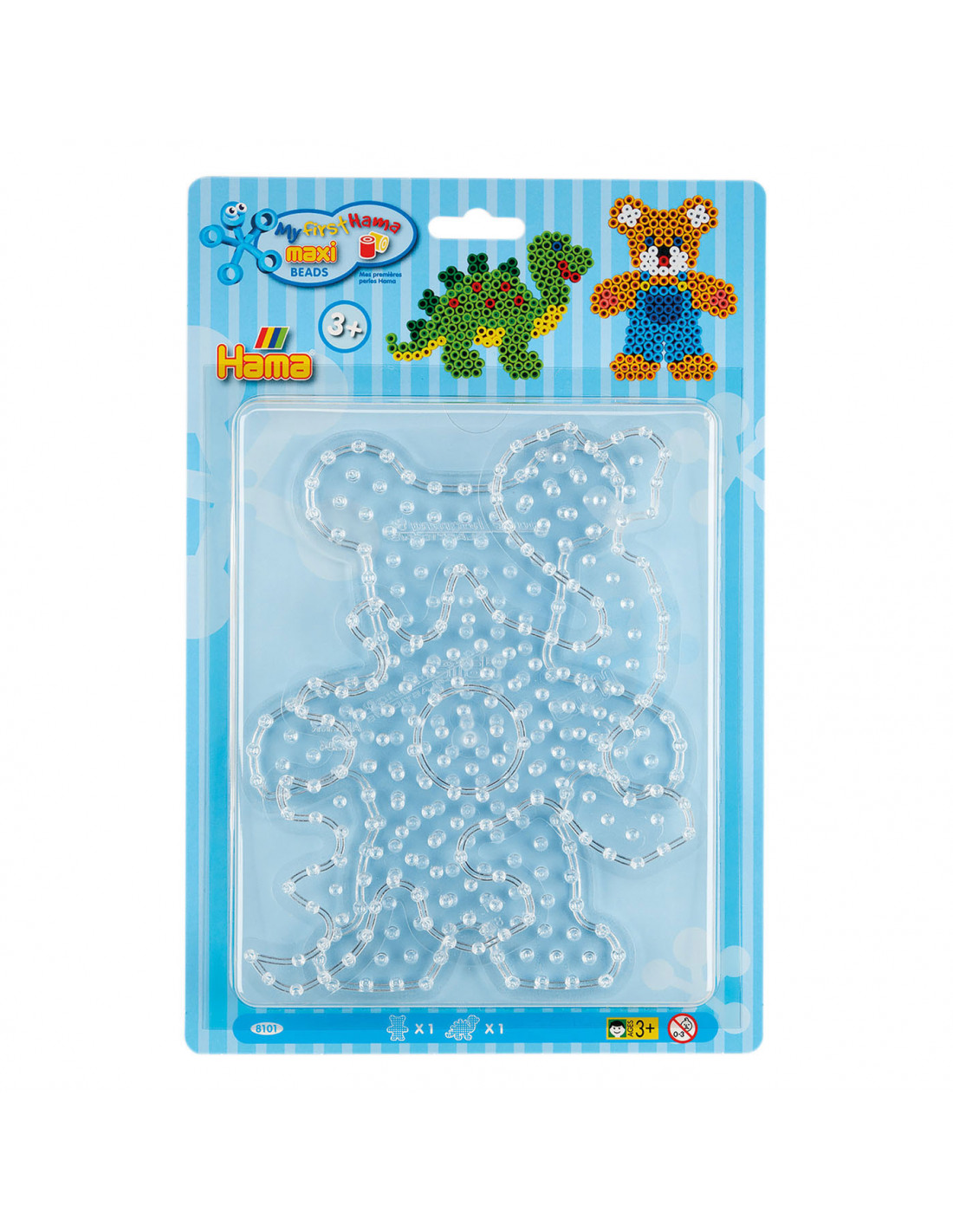Hama strijkkralenbordjes Maxi in de vorm van een Dino en een Teddybeer. De bordjes zijn alleen geschikt voor de maxi strijkkralen.