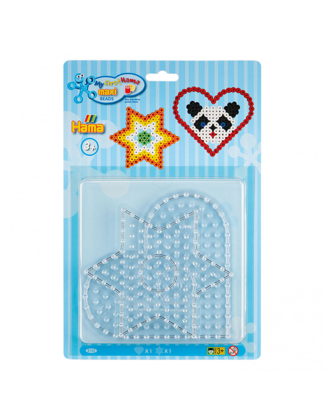 Hama strijkkralenbordjes Maxi in de vorm van een hart en een ster. De bordjes zijn alleen geschikt voor de maxi strijkkralen.