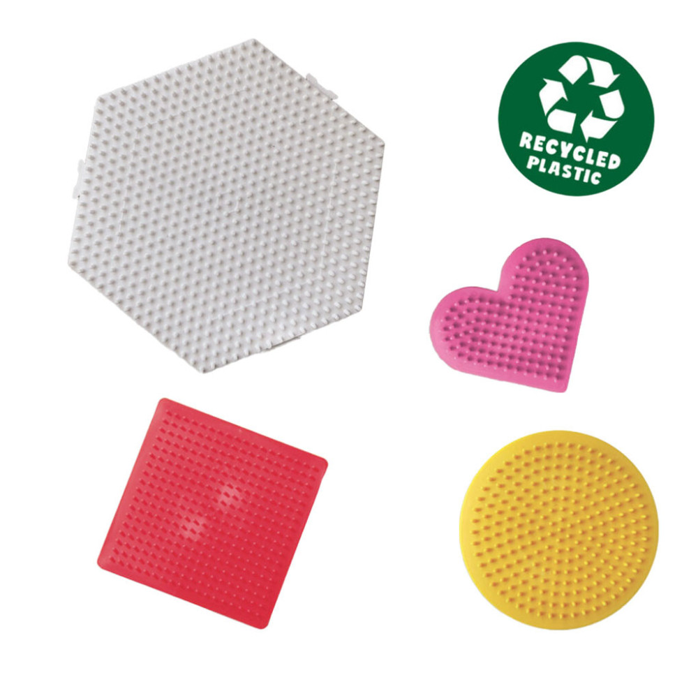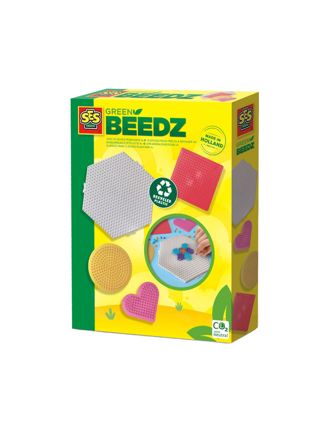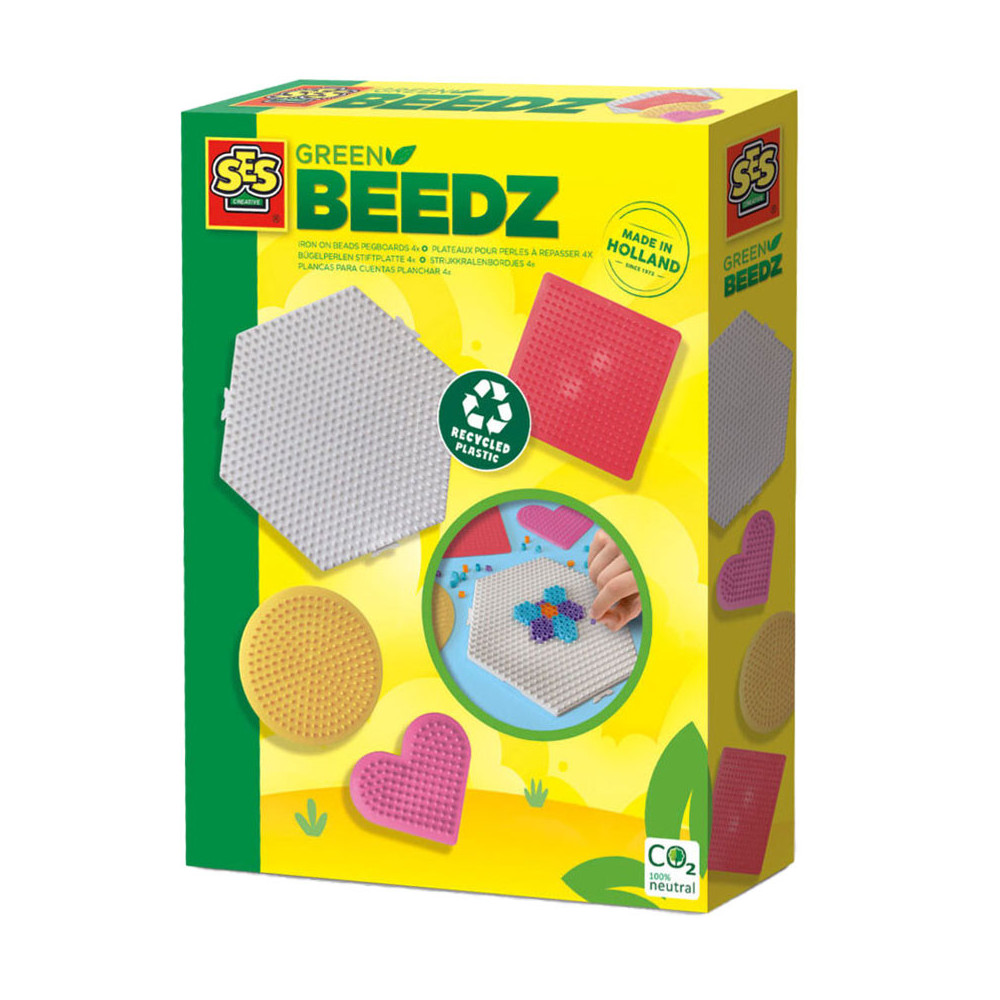 SES Creative brengt ieder jaar nieuwe sets van strijkkralen en legborden op de markt. Met onze strijkkralen zijn creative kunstwerken te maken en de verschillende legborden maken ieder kunstwerk anders. Deze set bestaat uit verschillende legborden in diverse vormen. Deze legborden zijn onderdeel van Green Beedz, waarbij zij compleet zijn gemaakt uit recyclede koelkasten.