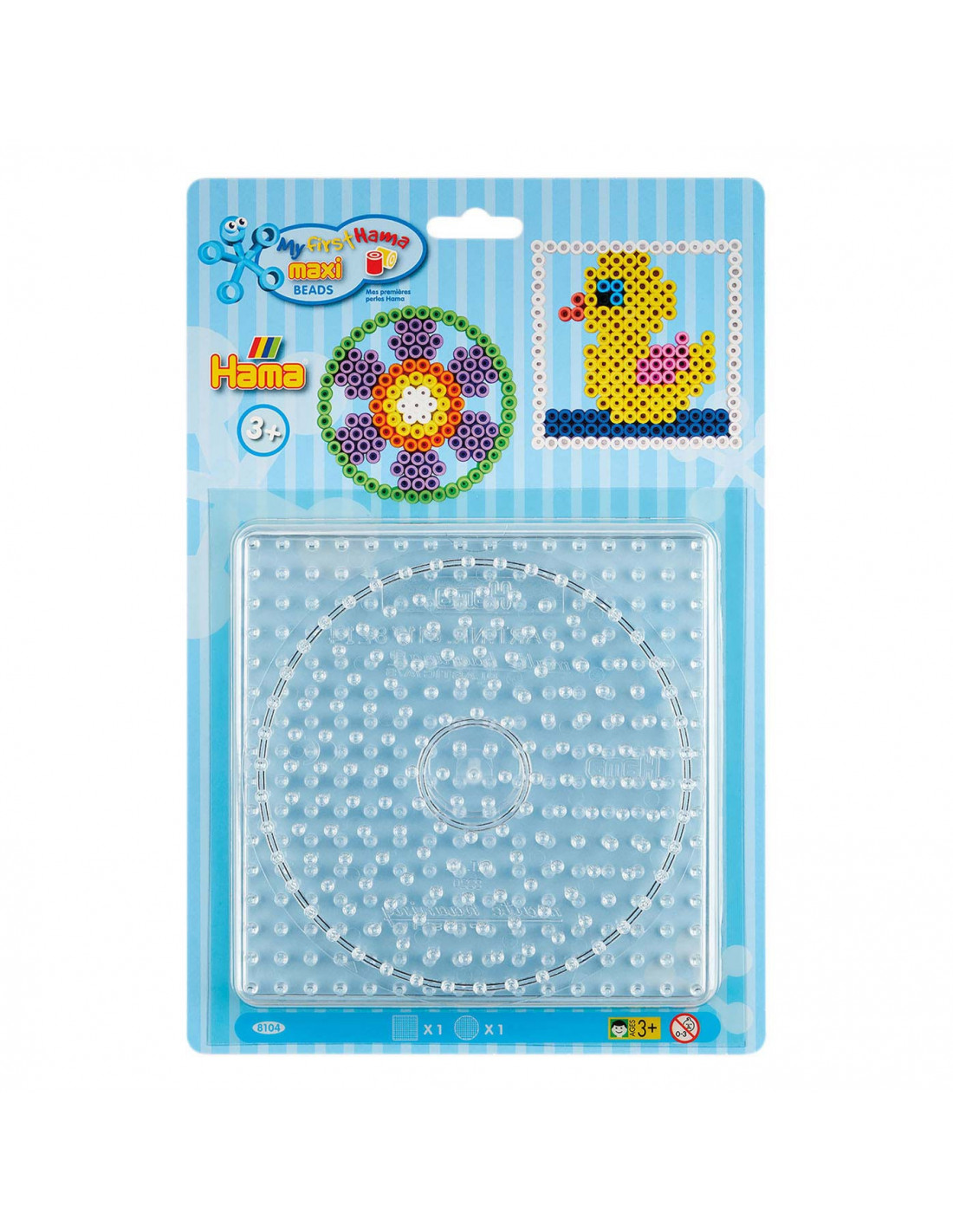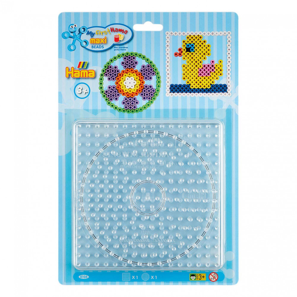 Hama strijkkralenbordjes Maxi in de vorm van een circkel en een vierkant. De bordjes zijn alleen geschikt voor de maxi strijkkralen.