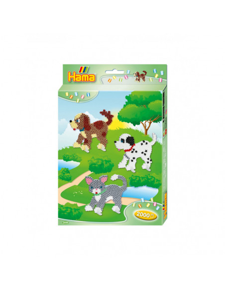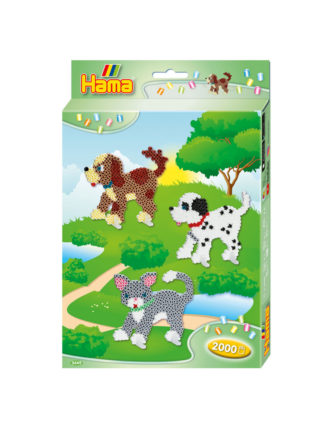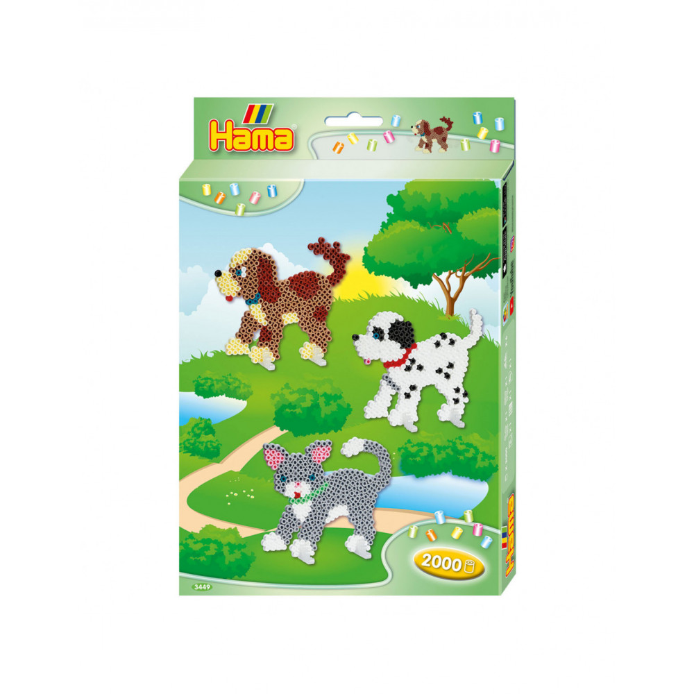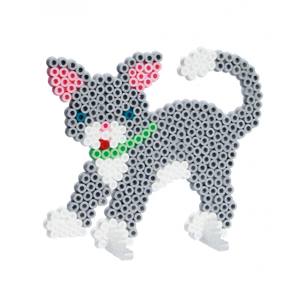 Hama strijkkralenset kat en hond met 2000 kralen, zeshoek strijkkralenbordje, kralenvoetjes, instructies en strijkpapier en instructies.
