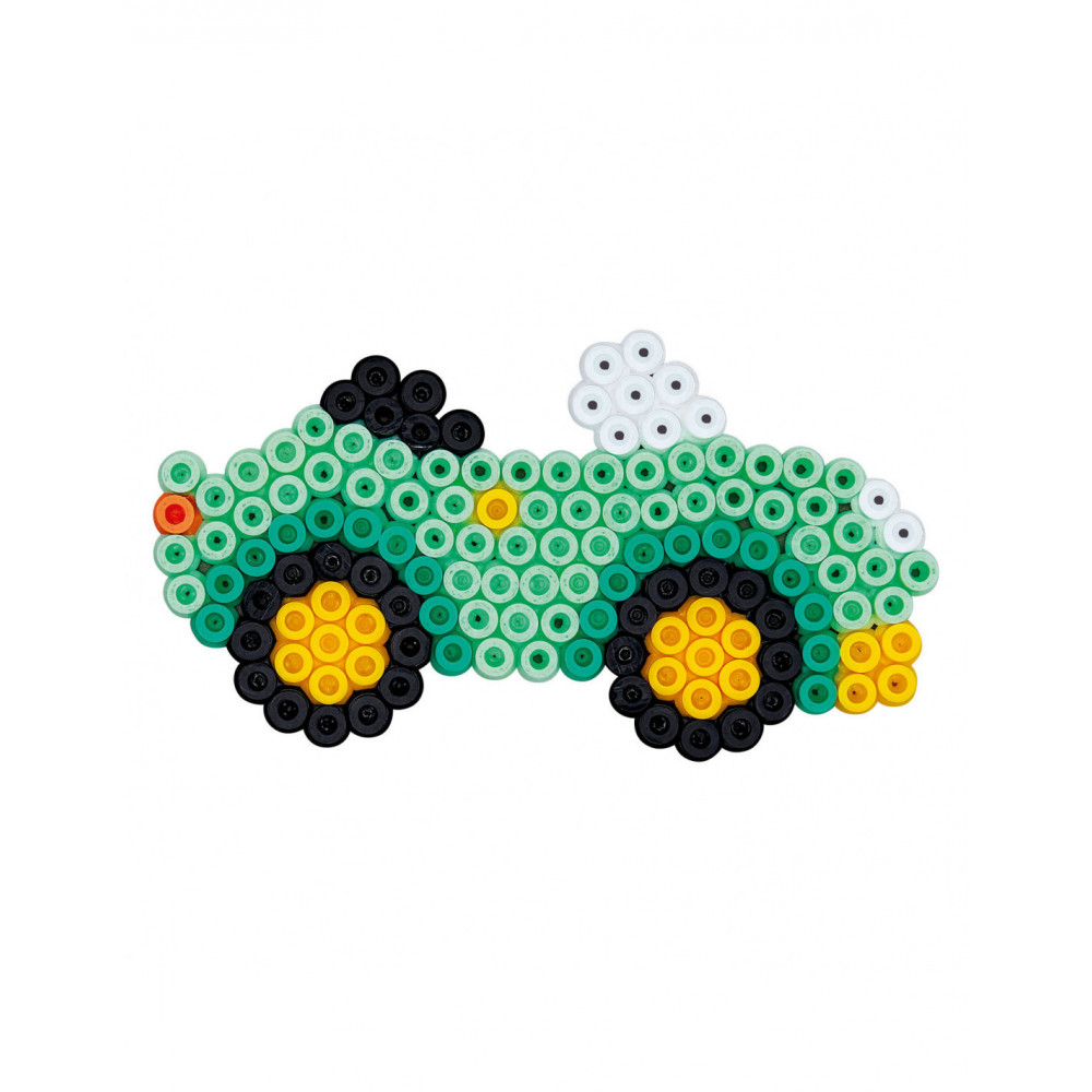 Hama strijkkralenset met 4000 kralen, 3 strijkkralenbordjes (auto, zeilschip en vliegtuig) en strijkpapier.