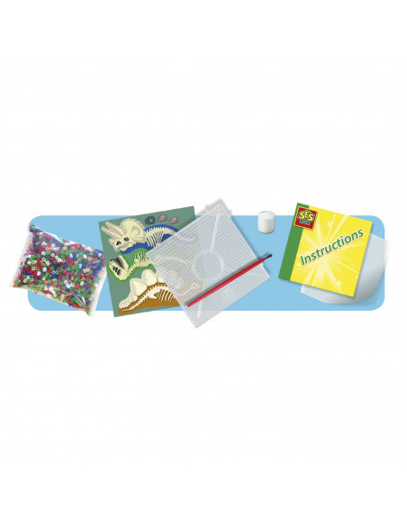 Gek op dino's? Dan is deze dino strijkkralenset echt iets voor jou! Leg de onderdelen van de T-Rex, Triceratops en Brachiosaurus na op het legbordje, laat een ouder de delen strijken en plak daarna de delen op de juiste dino skeletten. Maak zo je eigen te gekke dino's in 3D!