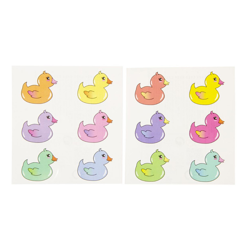 Als je op zoek bent naar een leuke en unieke manier om jezelf of je geliefde te versieren, dan zijn deze eendjes tattoo's misschien wel iets voor jou! Deze tatoeages zijn verkrijgbaar in zes verschillende kleuren op één vel, zodat je ze kunt mixen en matchen naar je eigen smaak.