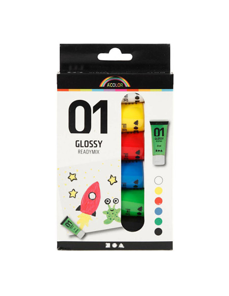 Semi-transparante, hoogwaardige glanzende acrylverf op waterbasis, geschikt als plakkaatverf en op vele andere lichte en absorberende ondergronden.De verf kan worden aangebracht met een kwast en gedept of gerold worden op oppervlakken met sjablonen en foam rollers. Spoel gereedschap na gebruik af in lauw water.