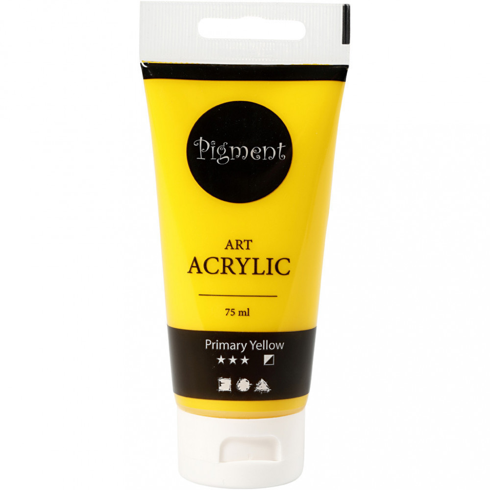 Pigment Art acrylverf op waterbasis, geel, semi-dekkend, 75 ml.