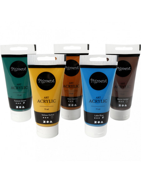 Pigment Art acrylverf op waterbasis, Natuurlijke kleuren, 5x75 ml.