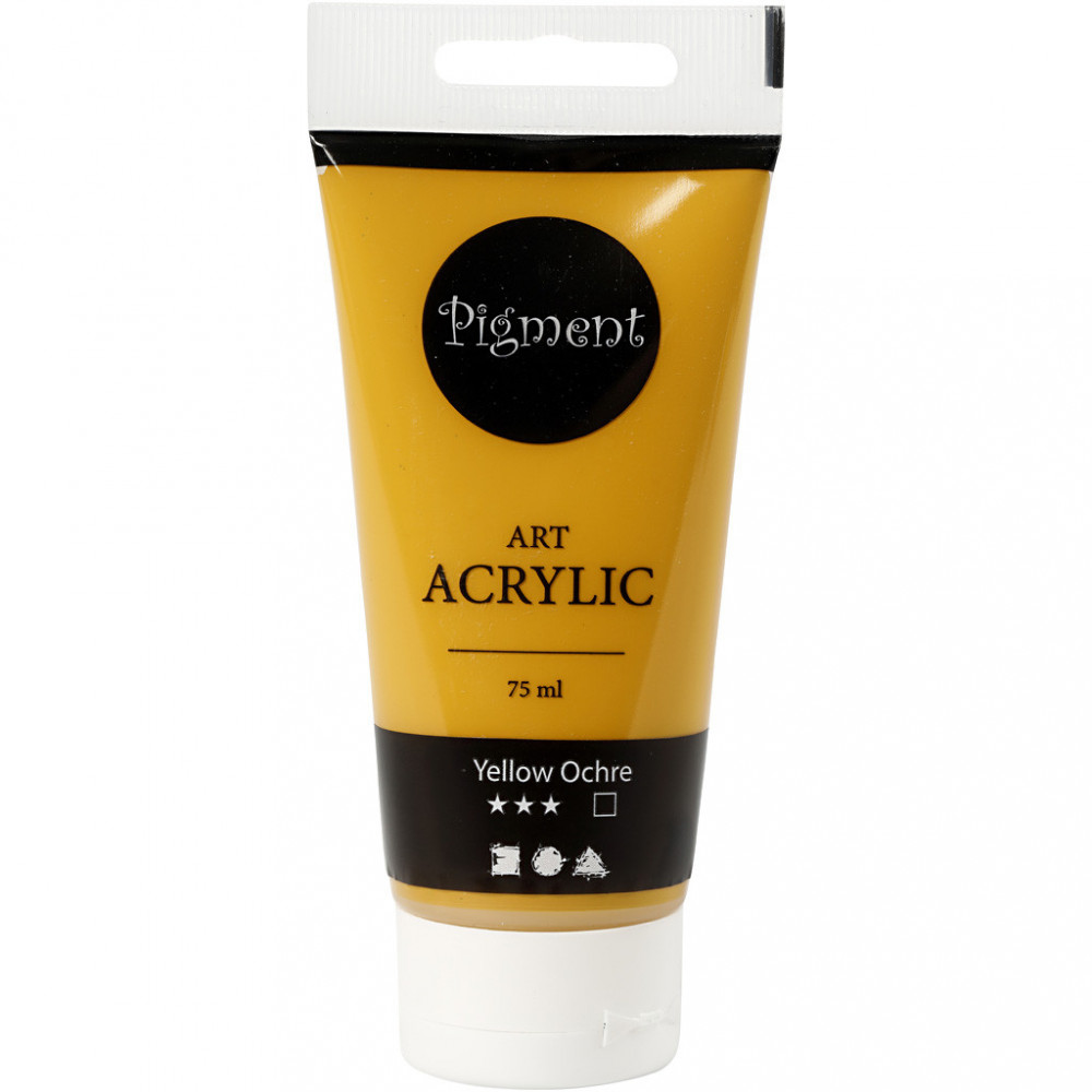 Pigment Art acrylverf op waterbasis, okergeel, dekkend, 75 ml.