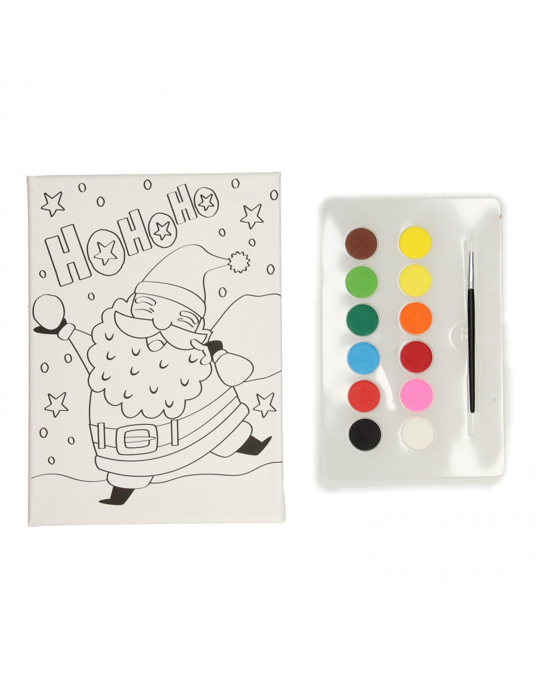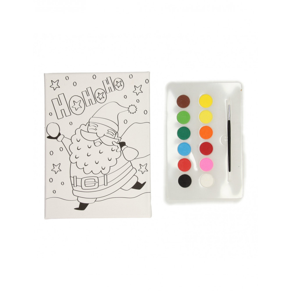 Kerstman die zich bevindt in een betoverend sneeuwlandschap. Met het bijgevoegde penseel en palet met 12 schitterende kleuren waterverf, kun je deze afbeelding tot leven brengen met je eigen creativiteit.