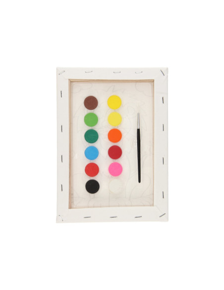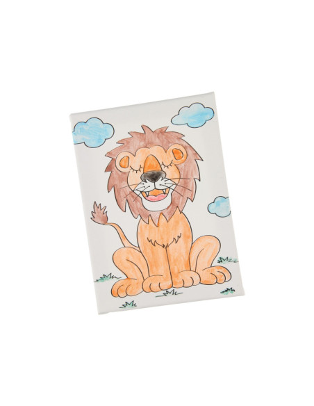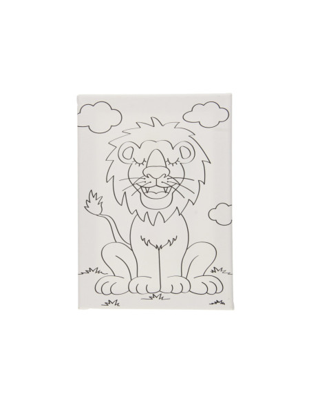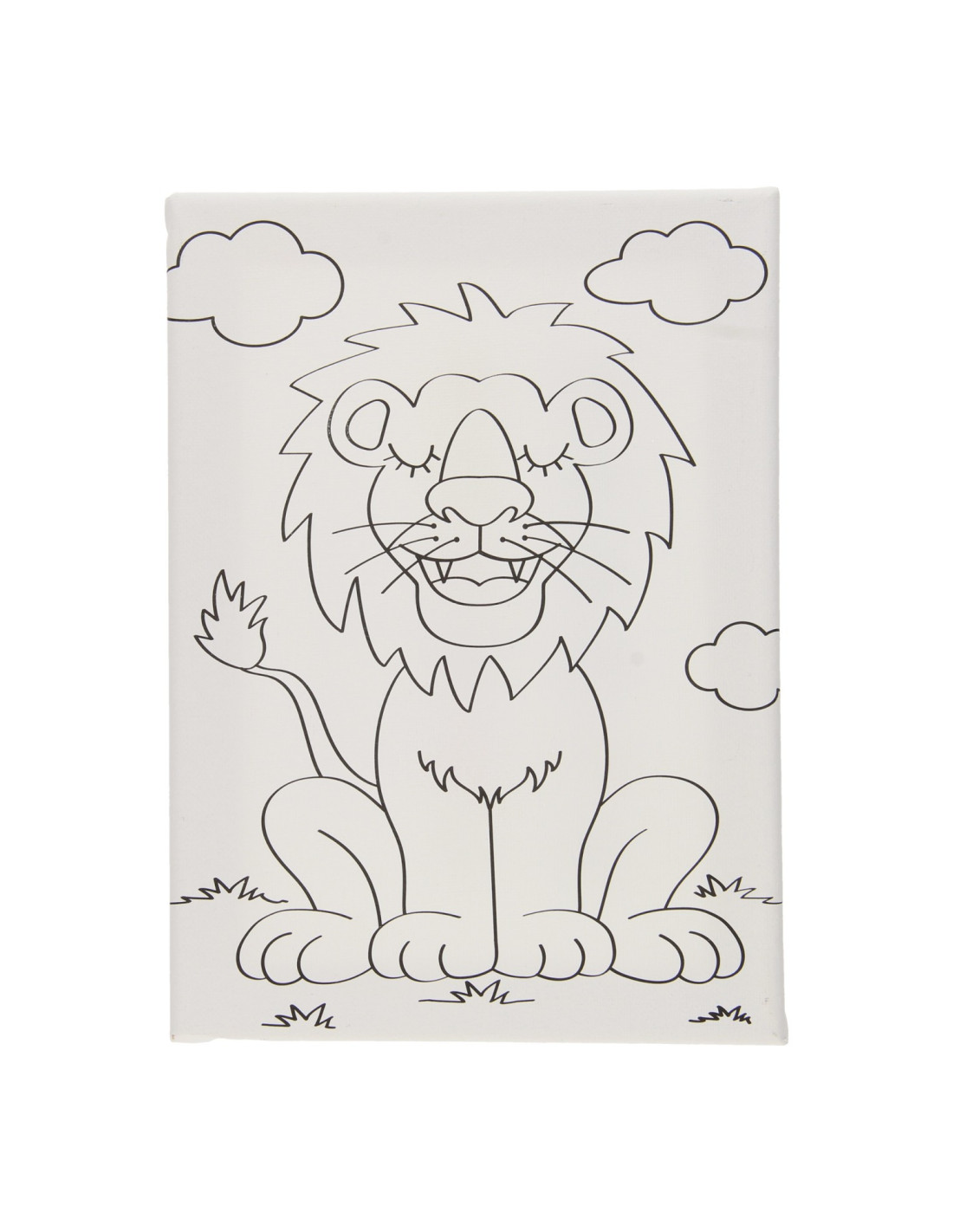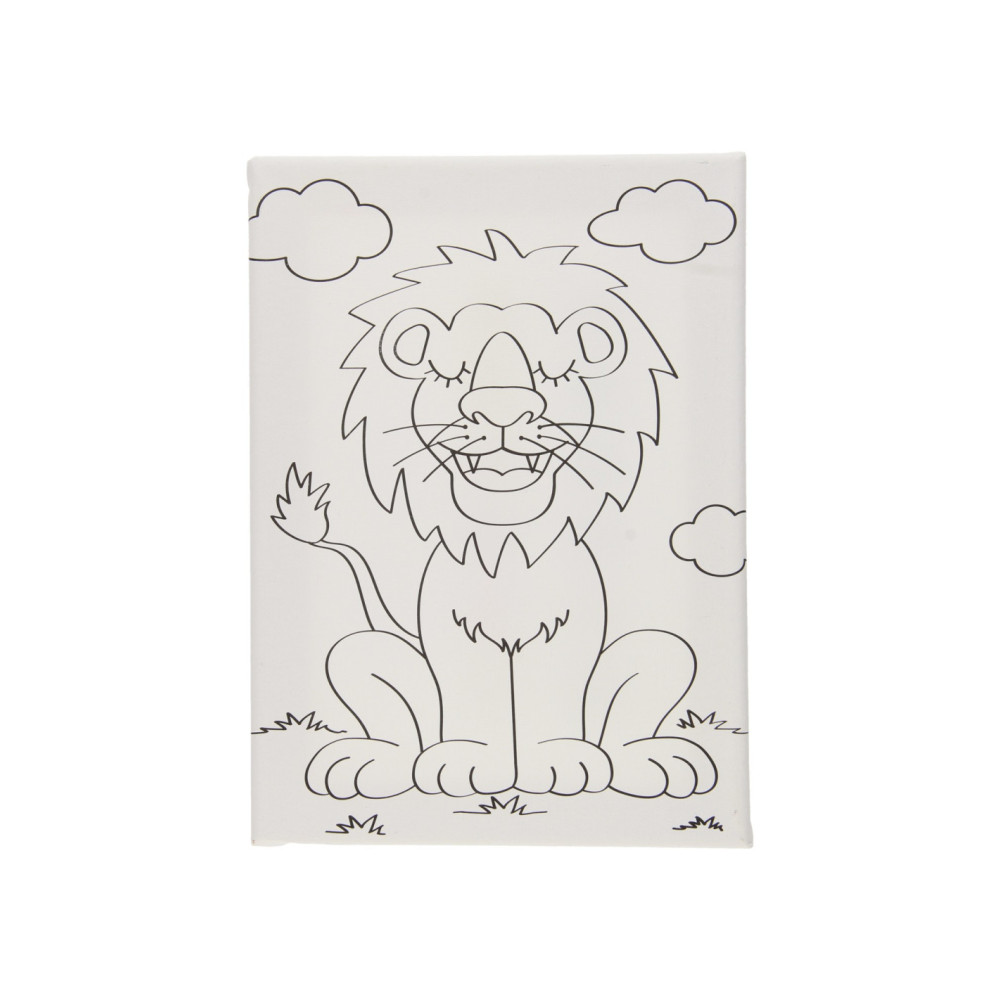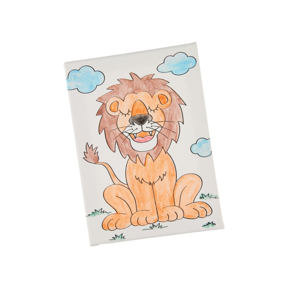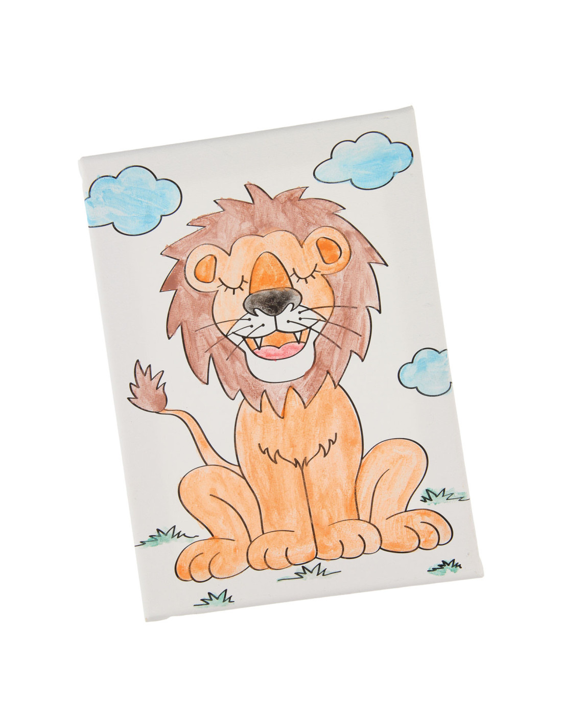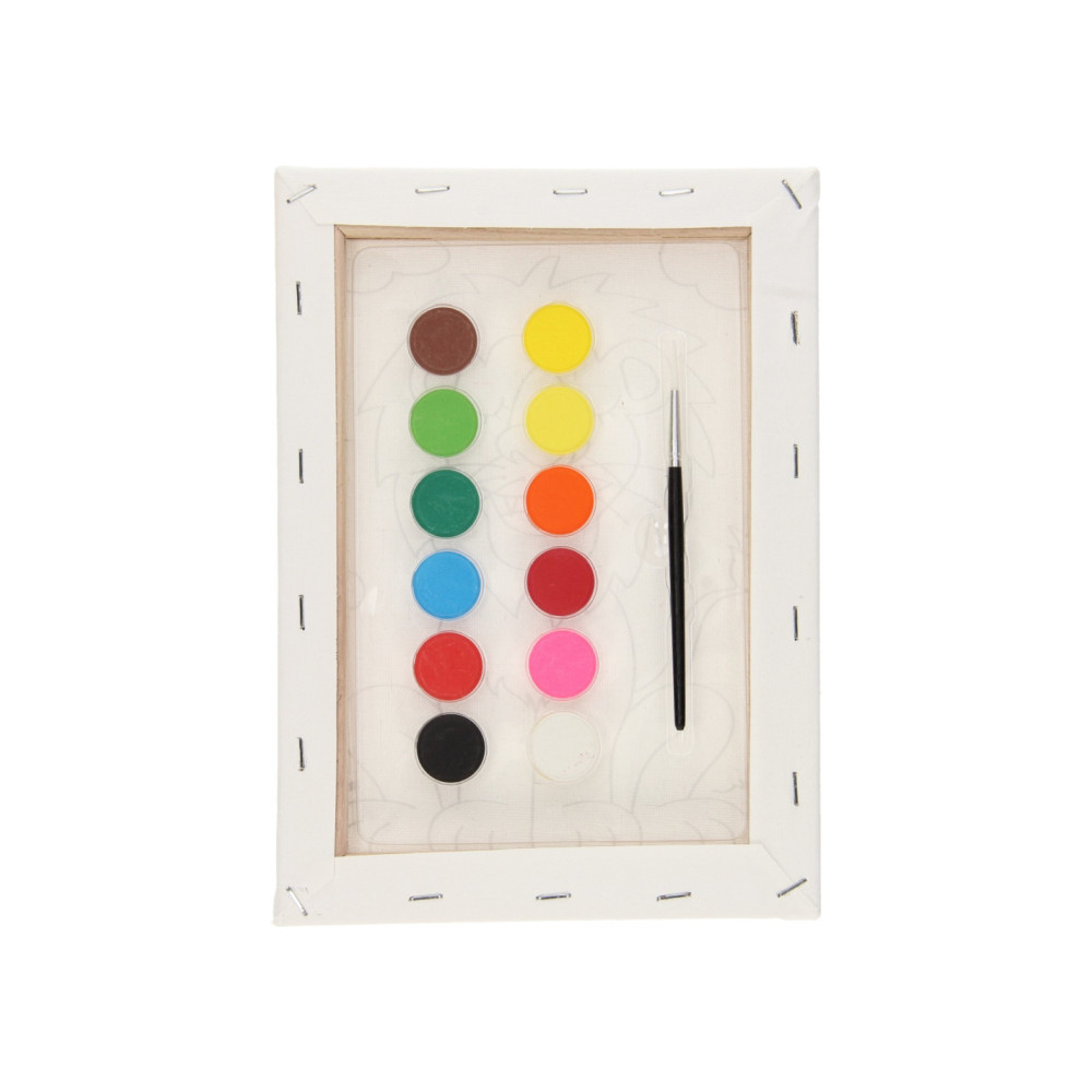 Deze schilderset bestaat uit een canvas met afgebeelde leeuw en pallet met 12 kleuren verf en een penseel.