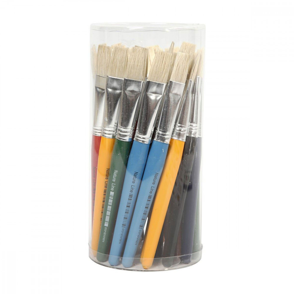 Deze platte, kleine kwasten zijn zeer geschikt voor zwaar werk. De platte varkensharen kwasten hebben een korte, gelakte steel (11 cm). Perfect voor kleine kinderhanden. Inhoud: 30 stuks.