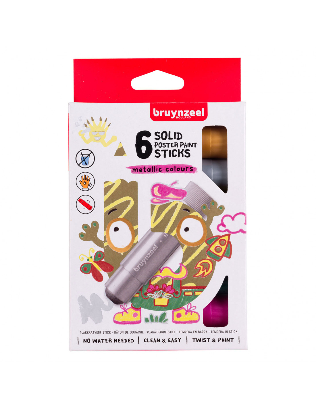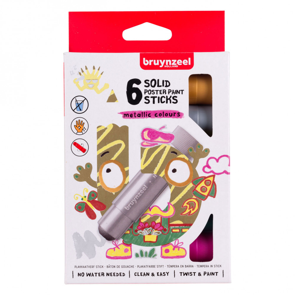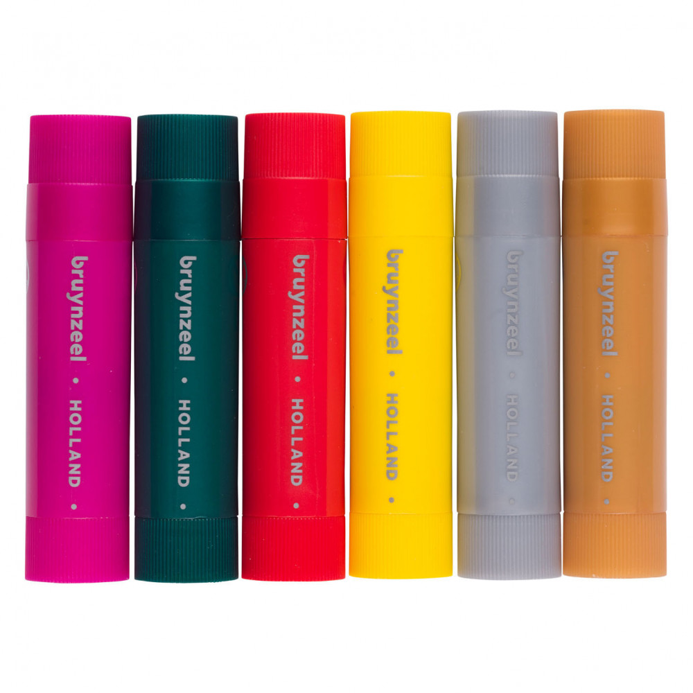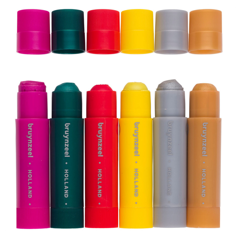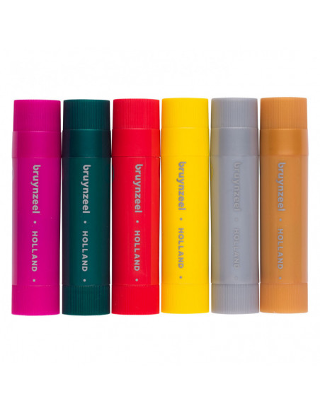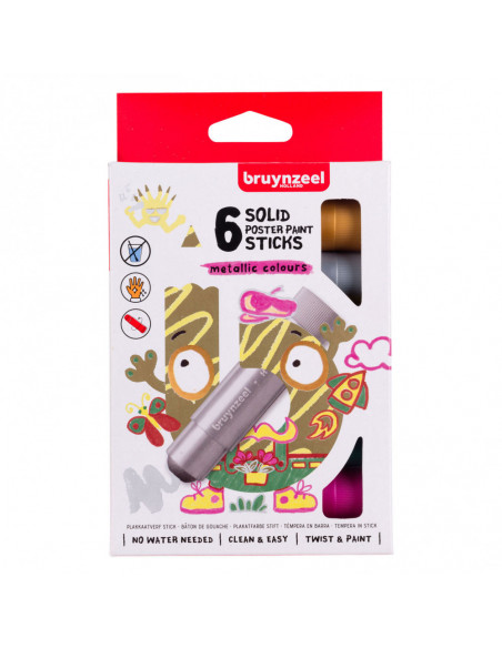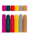 Deze stiften met plakkaatverf zijn speciaal ontwikkeld voor jonge kunstenaars en stimuleren de fijne motoriek. Verfresten zijn makkelijk van de handen te wassen met water en zeep. Bescherm kleding en meubels tegen vlekken. Mochten er vlekken ontstaan op stoffen, was ze dan direct met water en zeep. Geschikt voor gebruik op papier, karton, hout en glas. Inhoud: 6 x 10 gram.