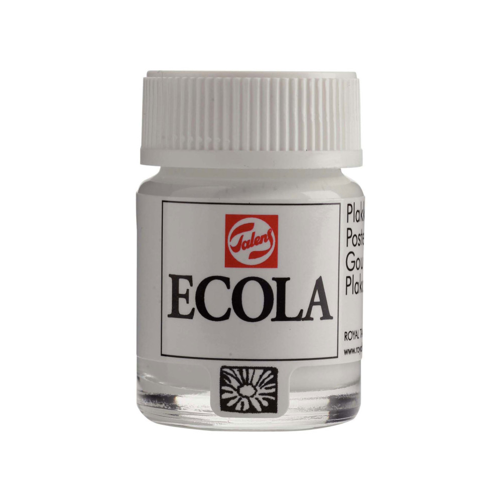 Talens Ecola plakkaatverf is een intens gekleurde verf, speciaal ontwikkeld om kleuren te leren mengen. De verf is dekkend, gebruiksvriendelijk en kan met water worden verdund, waardoor handen en penselen na gebruik gemakkelijk met water en zeep kunnen worden schoongemaakt. Ecola is verkrijgbaar in handige glazen potjes en grotere knijpflessen. Dankzij de intense kleur van de verf is deze zuinig in gebruik; een klein beetje gaat lang mee. Alle Talens Ecola kleuren voldoen aan de Europese veiligheidsnormen voor speelgoed.