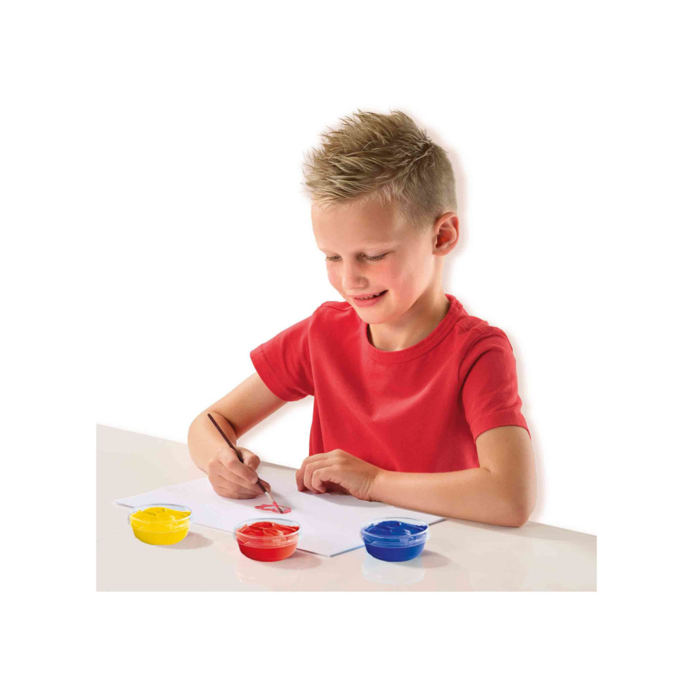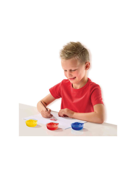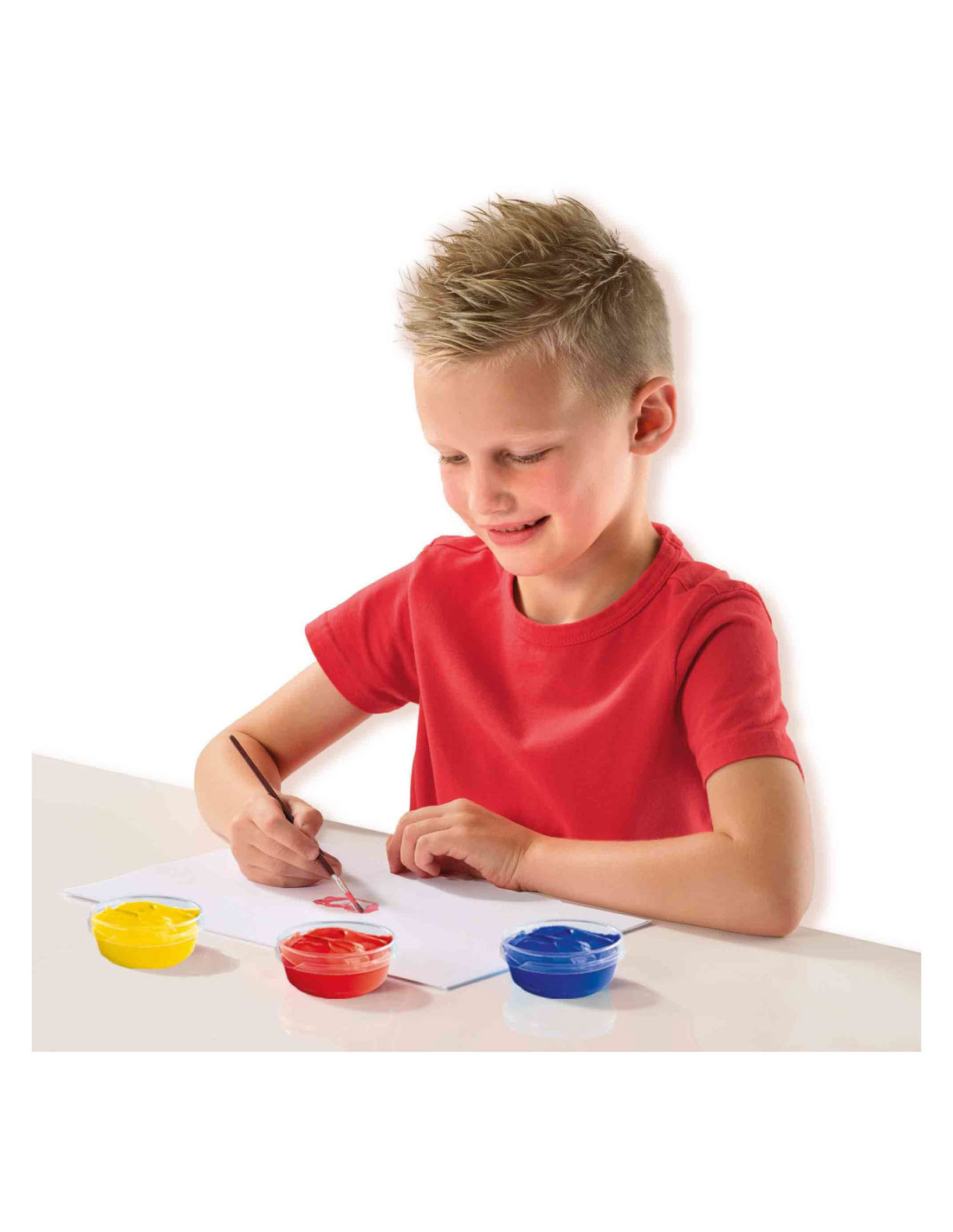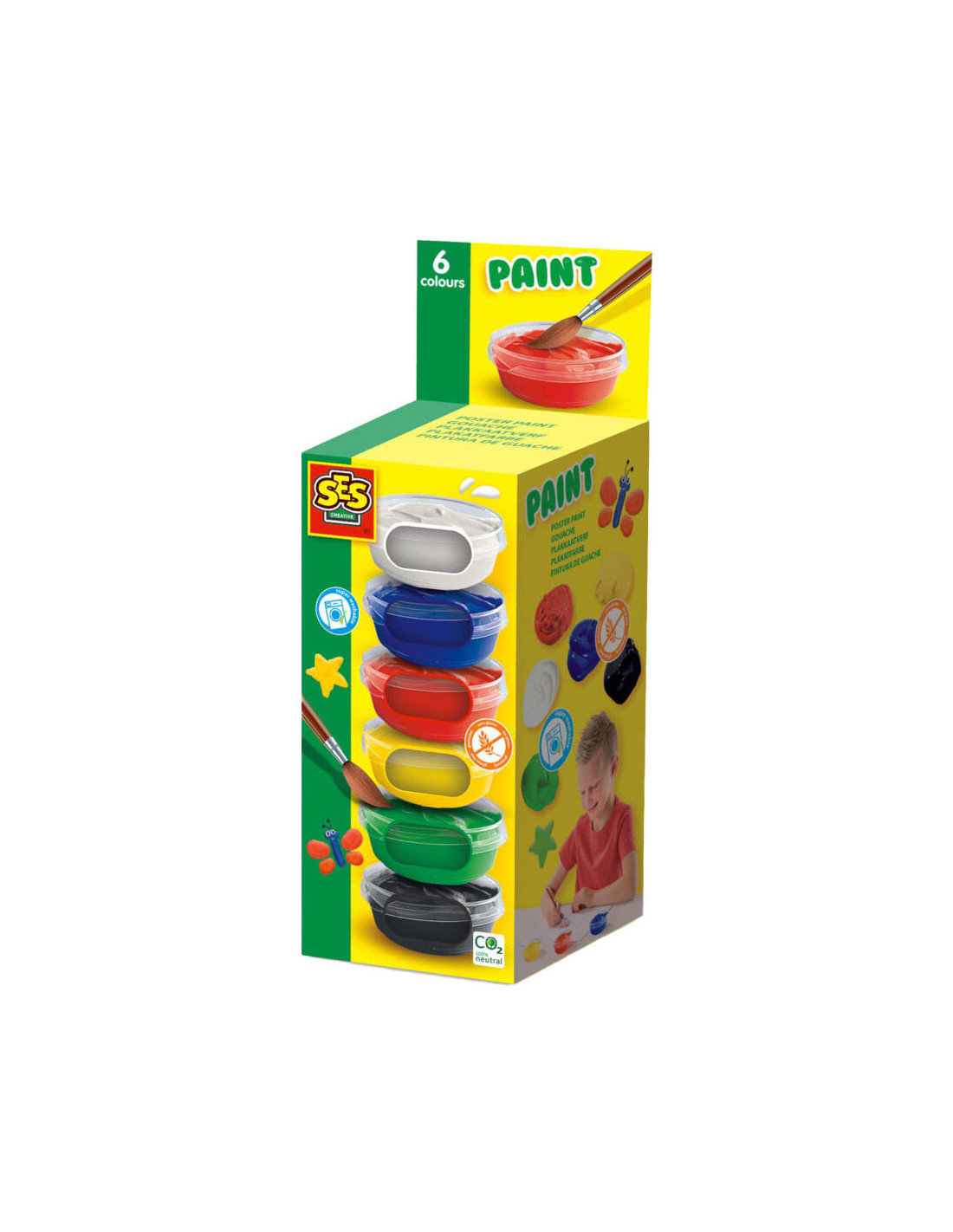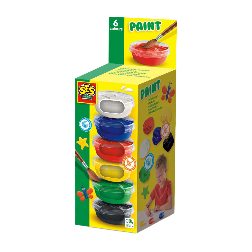 De plakkaatverf van SES Creative staat bekend om haar goede kwaliteit en heldere, dekkende kleuren. De plakkaatverf set bestaat uit de zes kleuren rood, blauw, wit, zwart, groen en geel. Door de kleuren te mengen zijn de mogelijkheden eindeloos en kunnen veel meer kleuren gecreëerd worden! De plakkaatverf van SES Creative is goed uitwasbaar uit de meeste textielsoorten.
