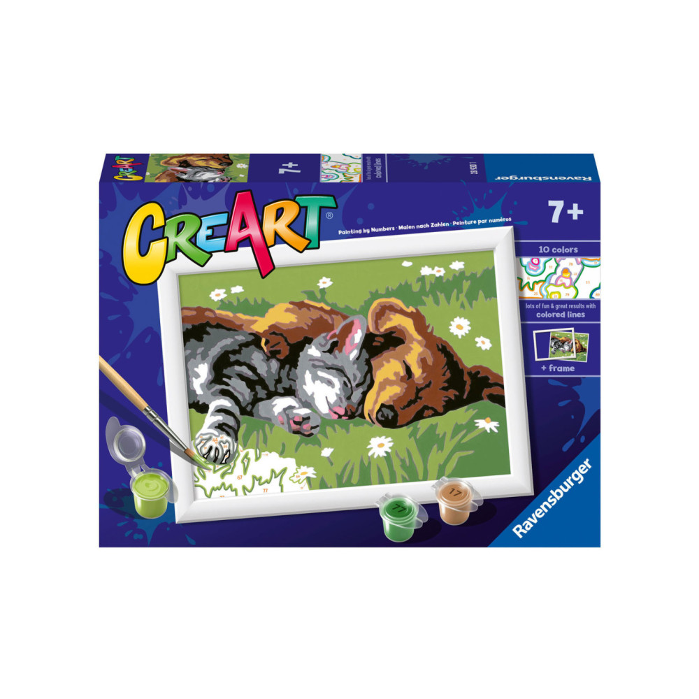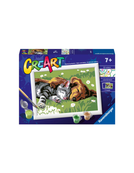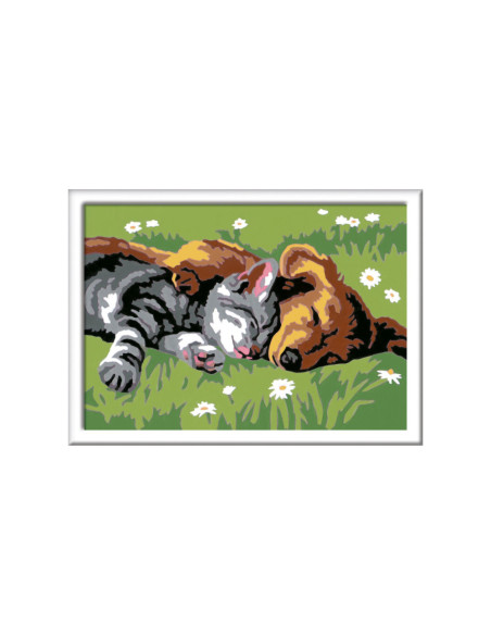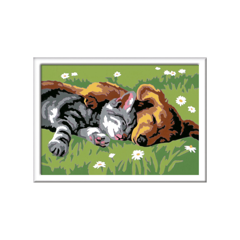 Schilderen op nummer van Ravensburger - iedereen kan schilderen! Dankzij de eenvoudige schildertechniek van schilderen op nummer is het kinderlijk eenvoudig de kunstenaar in jezelf wakker te maken! Dankzij de duidelijke schildervakjes met gekleurde buitenlijnen ontstaat een klein en prachtig kunstwerk van x . De fijnere kleurnuanceringen zorgen voor een elegant kleurverloop en schaduwspel. Uitpakken en aan de slag, met de afbeelding van Sleeping Cats and Dogs!