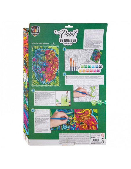 Schilderen op nummer met canvas, 12 kleuren verf en 3 kwasten. Het canvas is 30 bij 40 cm.