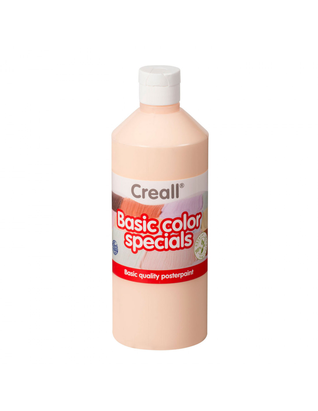 Pasteloranje Plakkaatverf om te gebruiken op karton, papier, hout en klei. Creall Schoolverf is gemaakt van 98% natuurlijke grondstoffen en mengbaar met andere kleuren plakkaatverf.