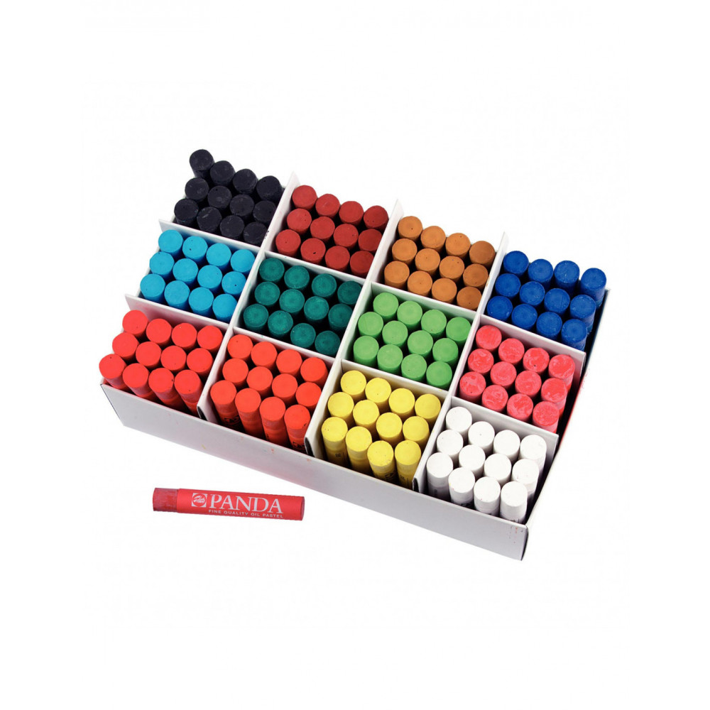 Set van 144 Talens Panda oliepastel krijtjes. De set bevat 12 kleuren en van elke kleur krijg je er 12.