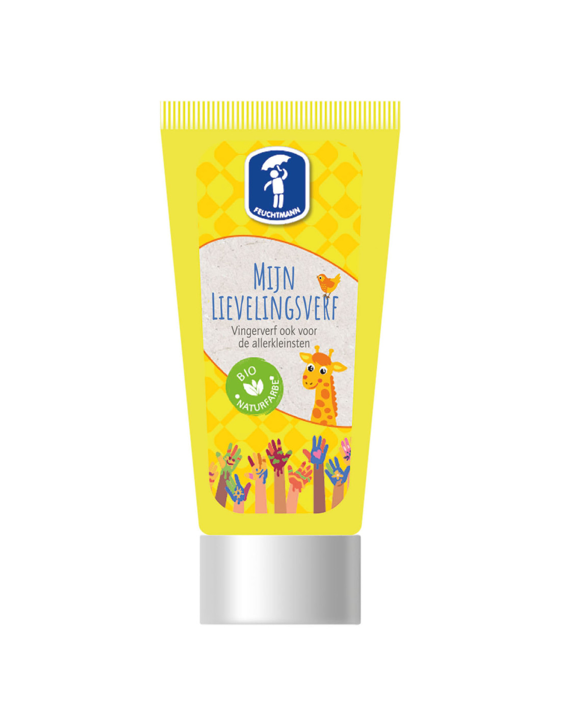 Tube gele vingerverf uit de serie Mijn Lievelingsverf van Feuchtmann. Deze vingerverf is allergenenvrij, makkelijk uitwasbaar en gemaakt van hoogwaardige grondstoffen. Geschikt voor kinderen vanaf 2 jaar oud.