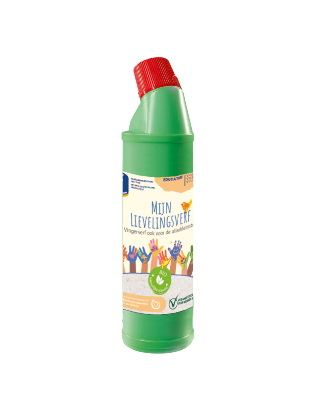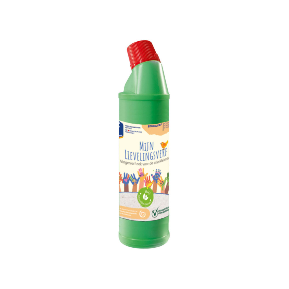 Fles groene vingerverf uit de serie Mijn Lievelingsverf van Feuchtmann. Deze vingerverf is allergenenvrij, makkelijk uitwasbaar en gemaakt van hoogwaardige grondstoffen. Geschikt voor kinderen vanaf 2 jaar oud.