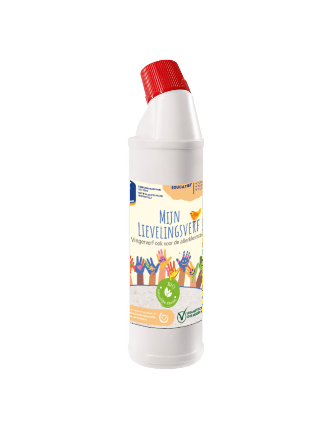 Fles witte vingerverf uit de serie Mijn Lievelingsverf van Feuchtmann. Deze vingerverf is allergenenvrij, makkelijk uitwasbaar en gemaakt van hoogwaardige grondstoffen. Geschikt voor kinderen vanaf 2 jaar oud.