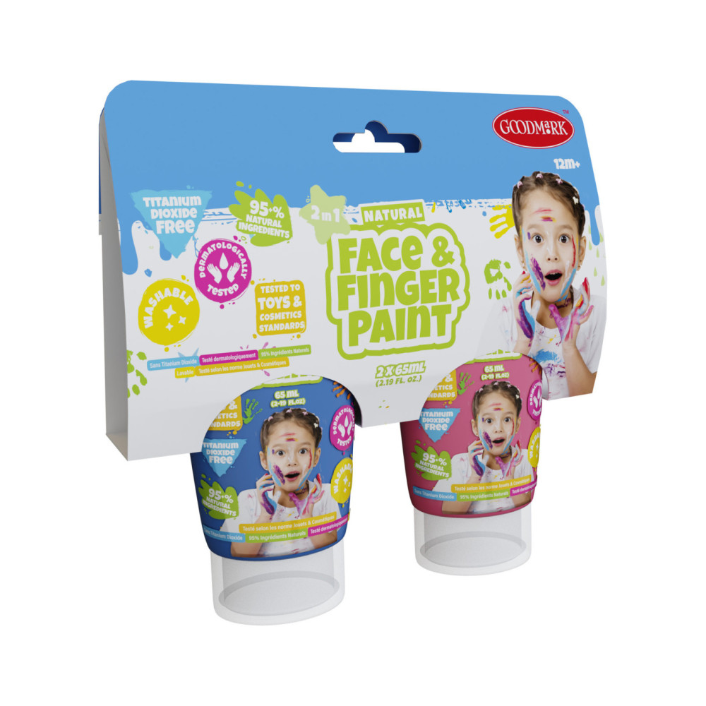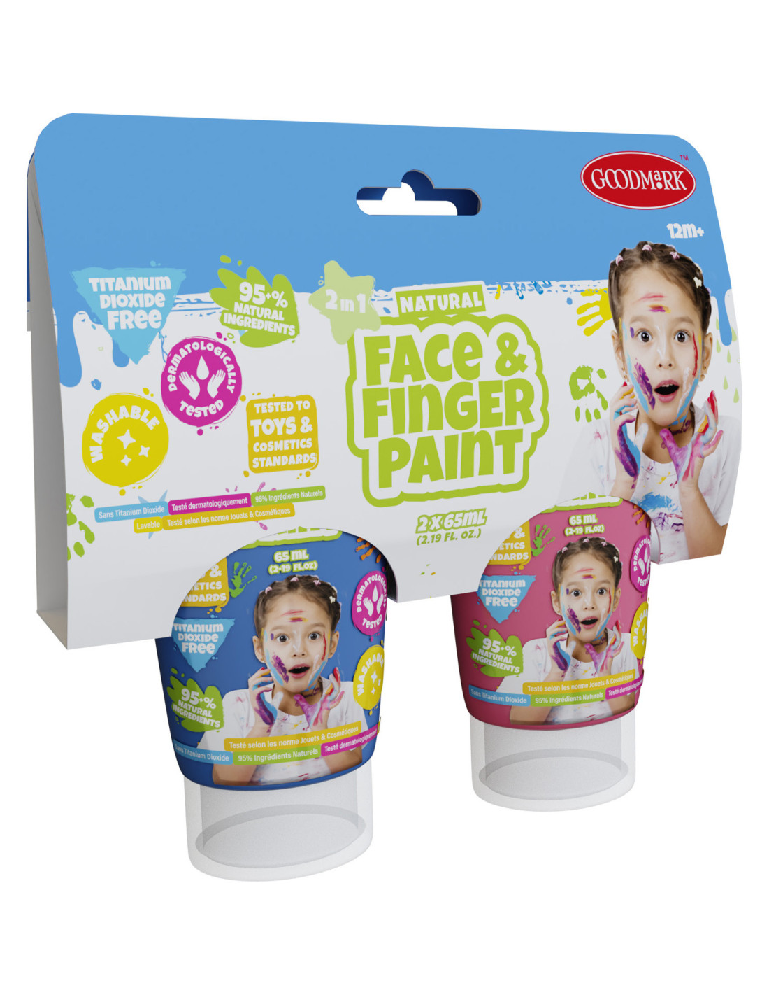De allereerste 2-in-1 gezicht- en vingerverf voor kinderen is nu gelanceerd! Speel en schilder zoals je wilt, en met de gemakkelijke wasbaarheid is het eenvoudig schoon te maken. ALLE formuleringen zijn getest en veilig volgens speelgoedrichtlijnen en cosmetica-voorschriften, dus geen gevaar wanneer kinderen hun eigen of andermans gezichten insmeren. Deze grappige momenten zijn nu volledig VEILIG! De 2 pack geeft je 2 verschillende kleuren om mee te spelen en verven.