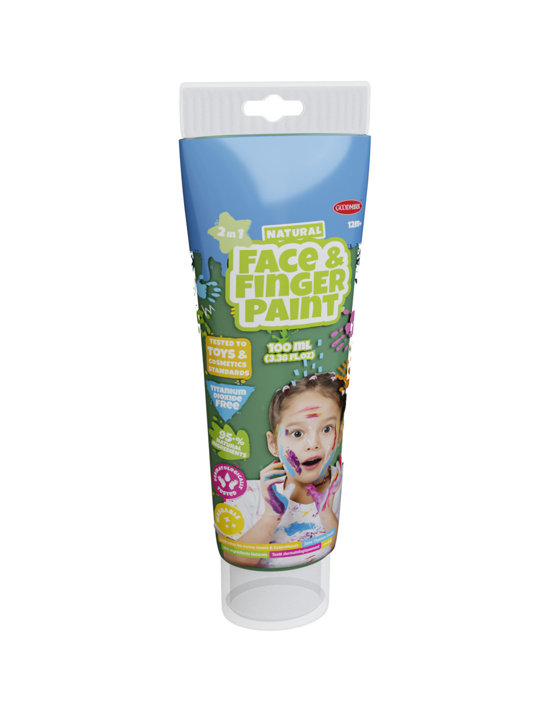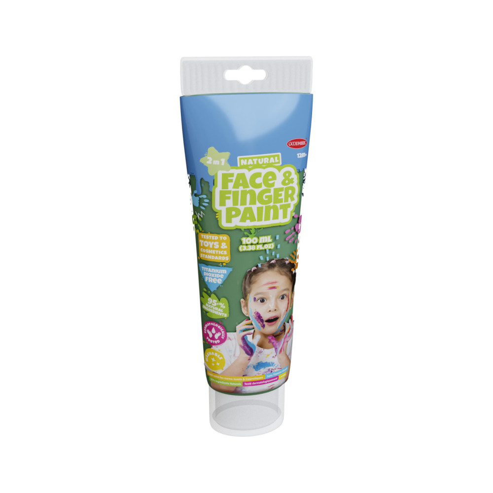 De allereerste 2-in-1 gezicht- en vingerverf voor kinderen is nu gelanceerd! Speel en schilder zoals je wilt, en met de gemakkelijke wasbaarheid is het eenvoudig schoon te maken. ALLE formuleringen zijn getest en veilig volgens speelgoedrichtlijnen en cosmetica-voorschriften, dus geen gevaar wanneer kinderen hun eigen of andermans gezichten insmeren. Deze grappige momenten zijn nu volledig VEILIG! Verf in alle kleuren met deze 100ml tubes.