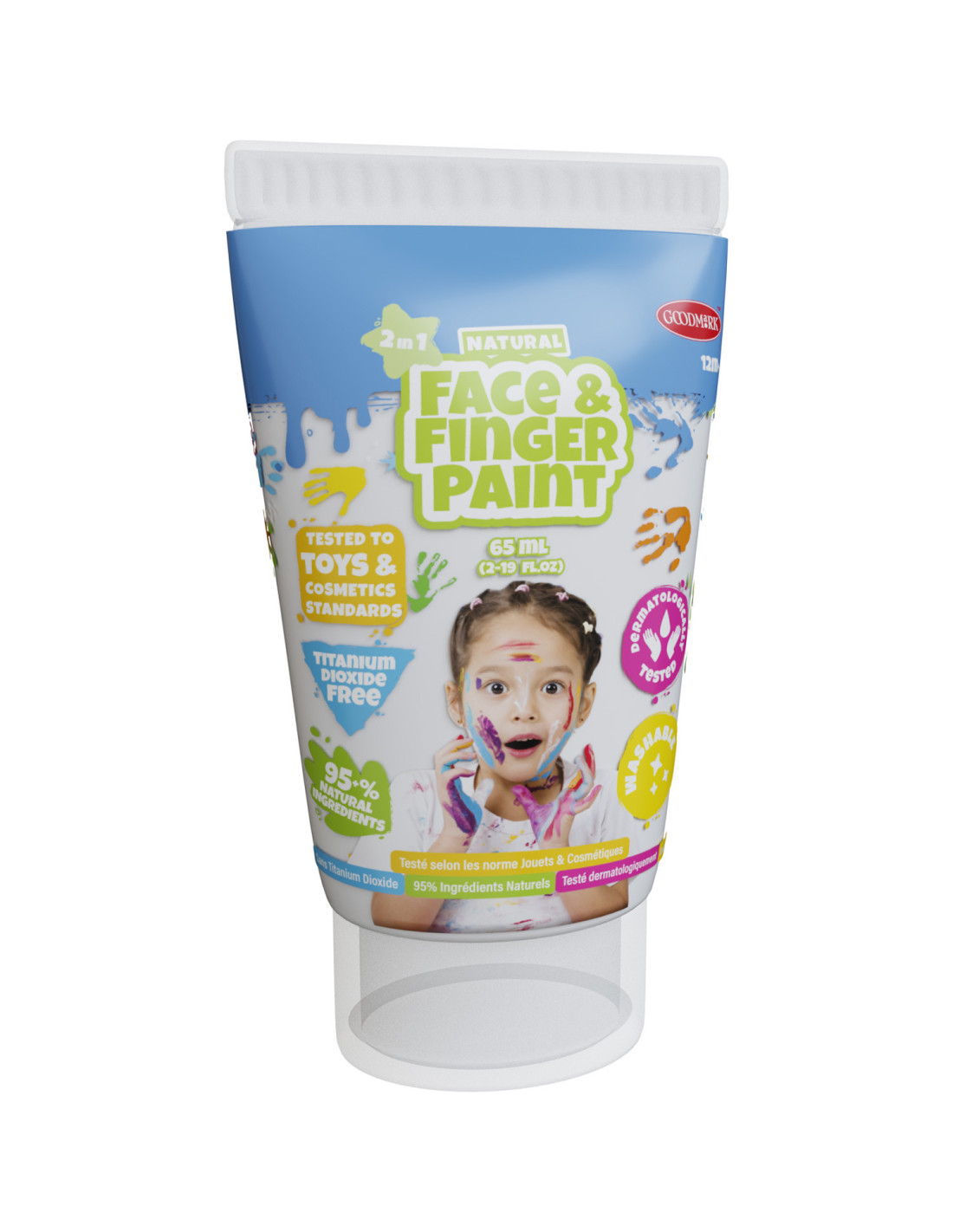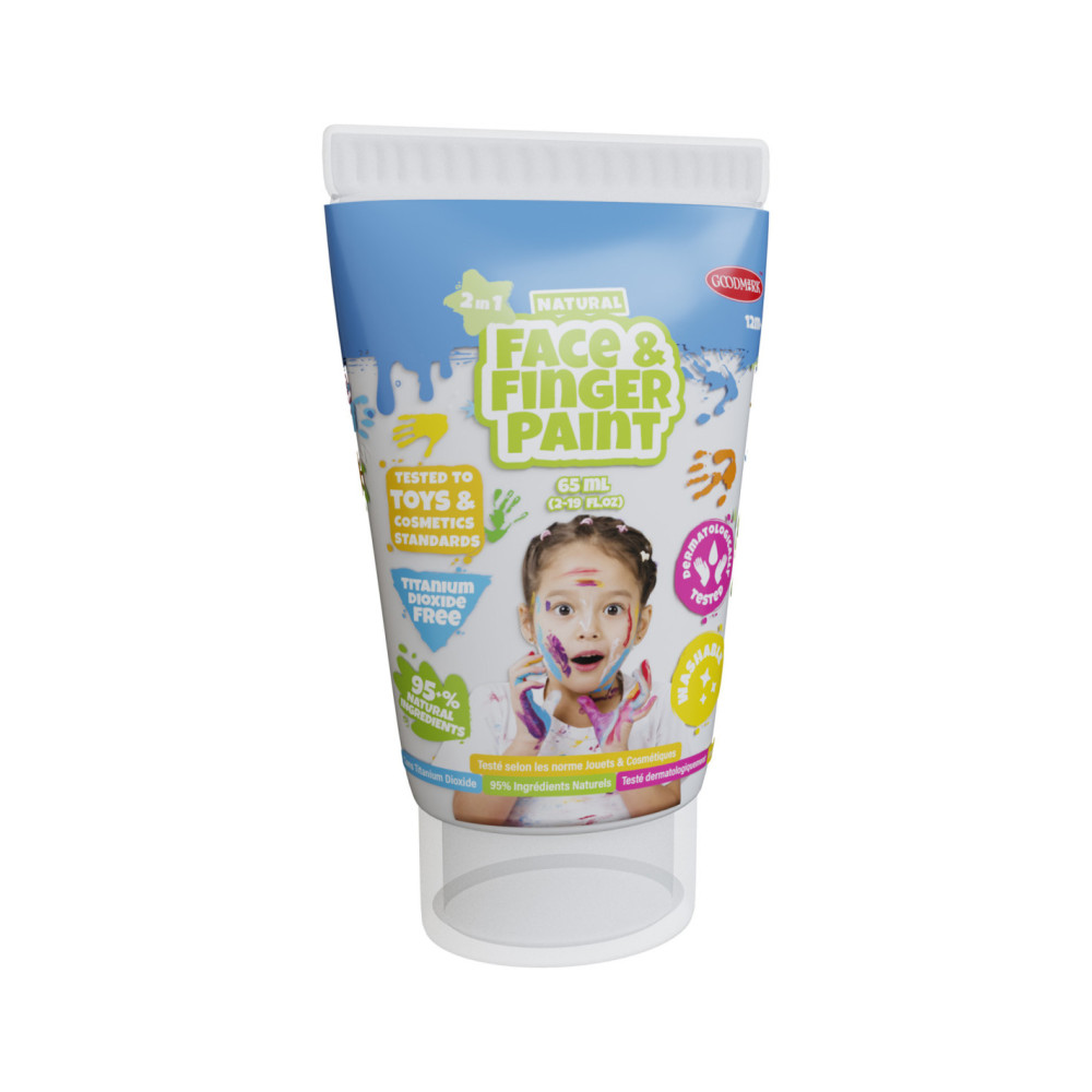 De allereerste 2-in-1 gezicht- en vingerverf voor kinderen is nu gelanceerd! Speel en schilder zoals je wilt, en met de gemakkelijke wasbaarheid is het eenvoudig schoon te maken. ALLE formuleringen zijn getest en veilig volgens speelgoedrichtlijnen en cosmetica-voorschriften, dus geen gevaar wanneer kinderen hun eigen of andermans gezichten insmeren. Deze grappige momenten zijn nu volledig VEILIG! Verf in alle kleuren met deze 65ml tubes.