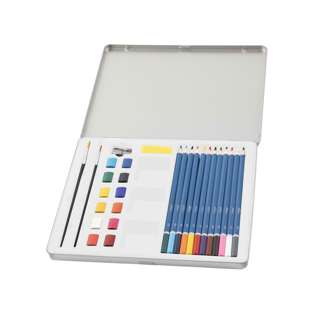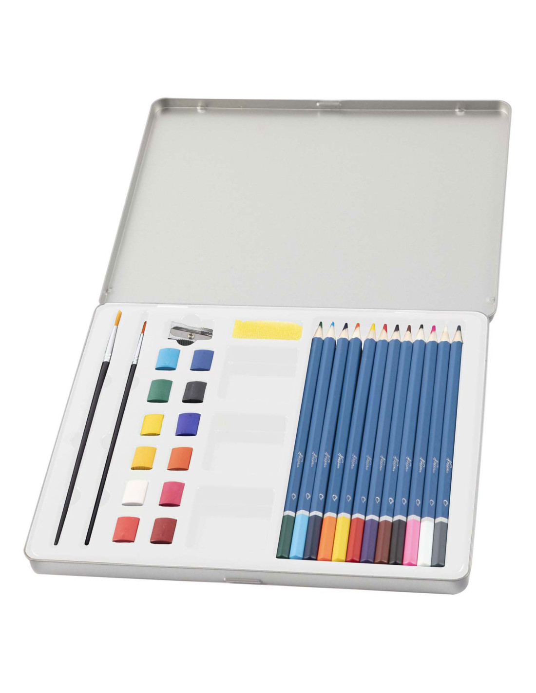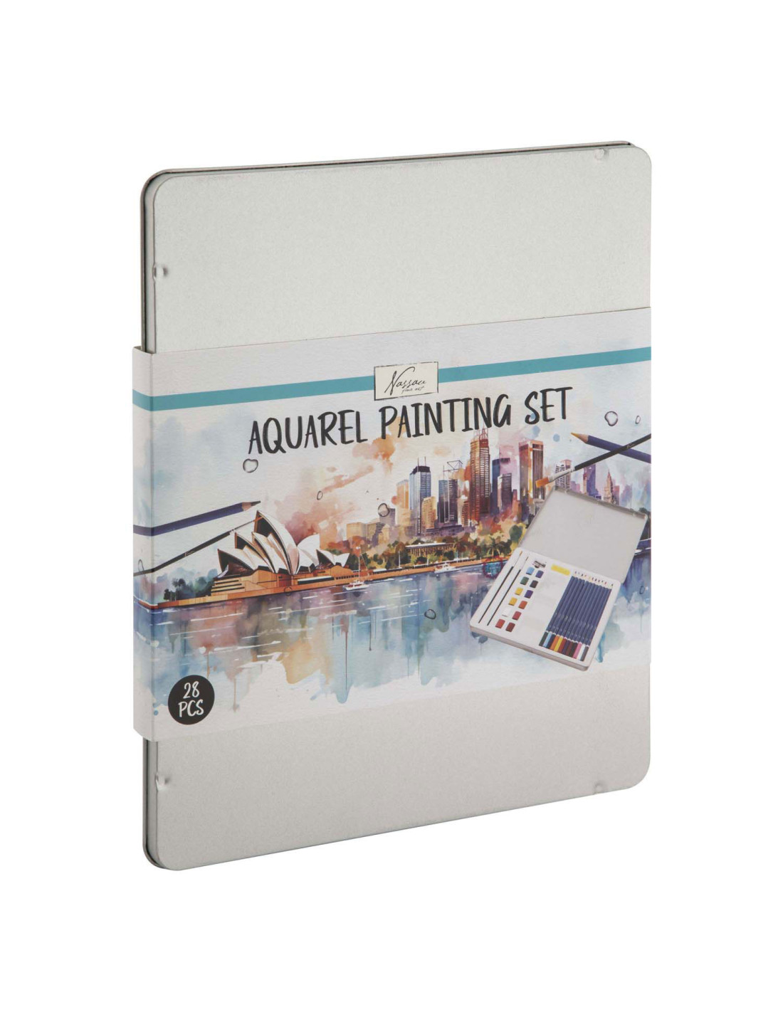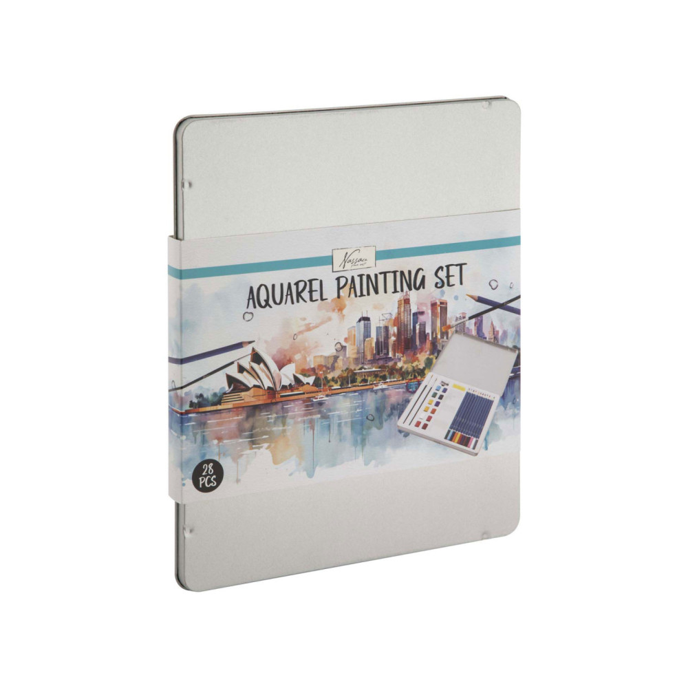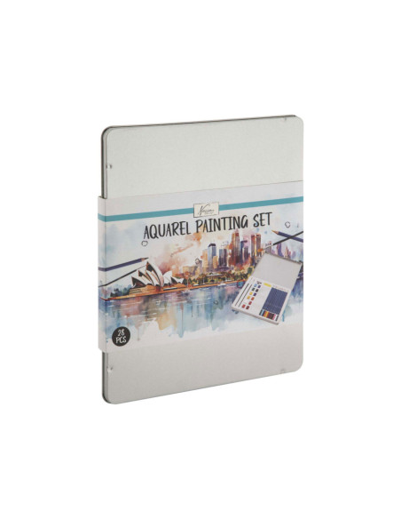 Tinnen box met aquarelverf. De set is 28-delig en bevat: