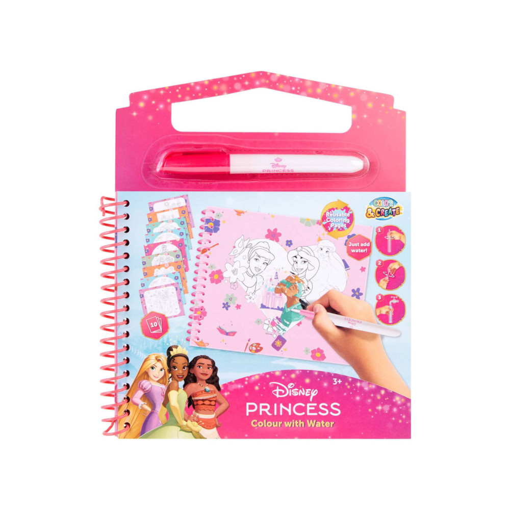 Disney prinses waterkleurboek. De set bevat 10 tekeningen en één pen. Geschikt voor kinderen vanaf 3 jaar.