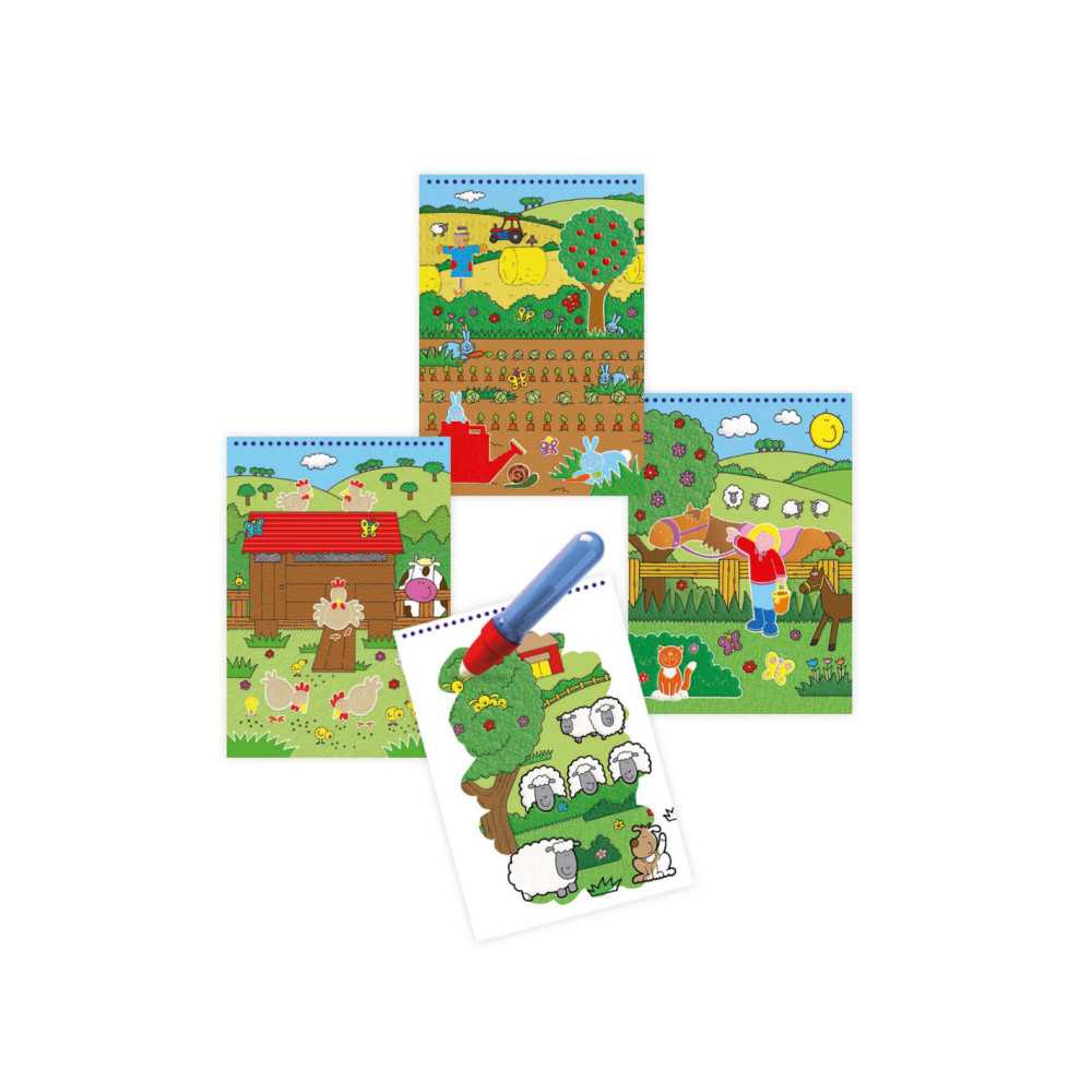Vul de pen met water en ontdek welke kleuren de tekening heeft. Het kleurboek kan eindeloos gebruikt worden want zodra het water opgedroogd is verdwijnt de tekening. Dankzij de ringband is het kleurboek eenvoudig in gebruik.