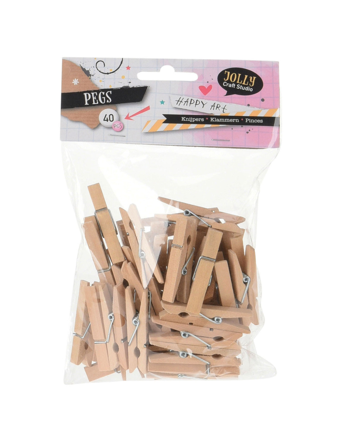 Zakje met 40 blanco houten wasknijpers van dennenhout. De knijpers zijn geschikt om mee te knutselen en om zelf te decoreren.