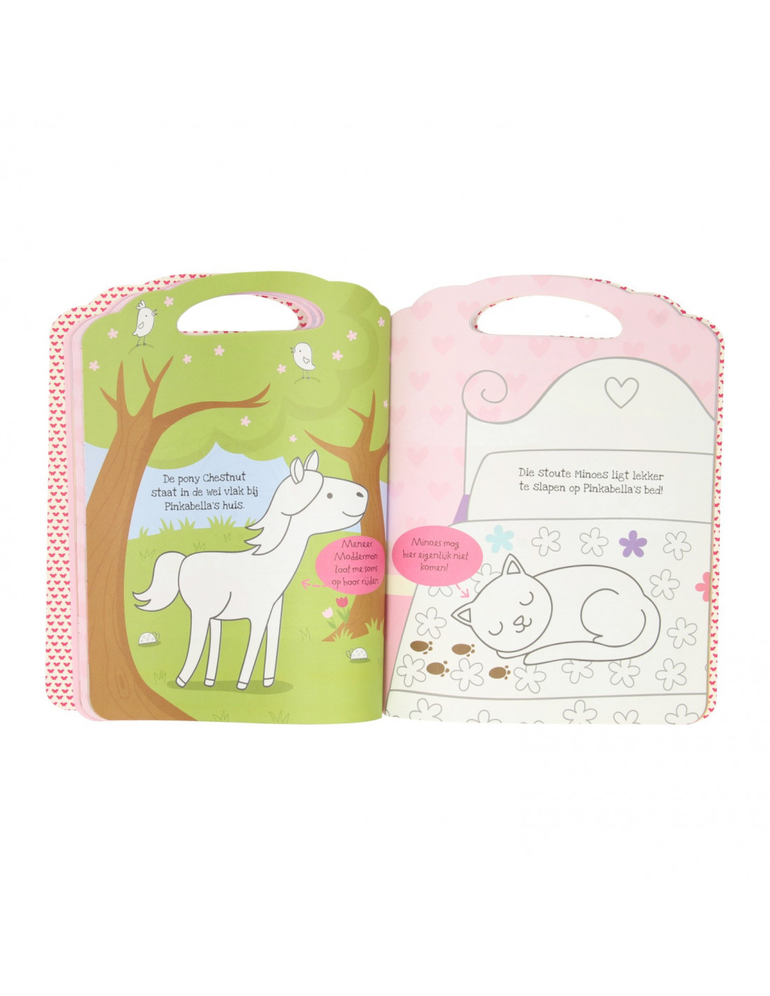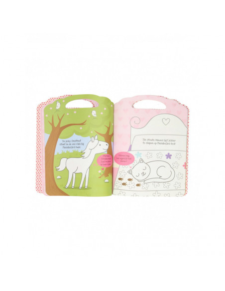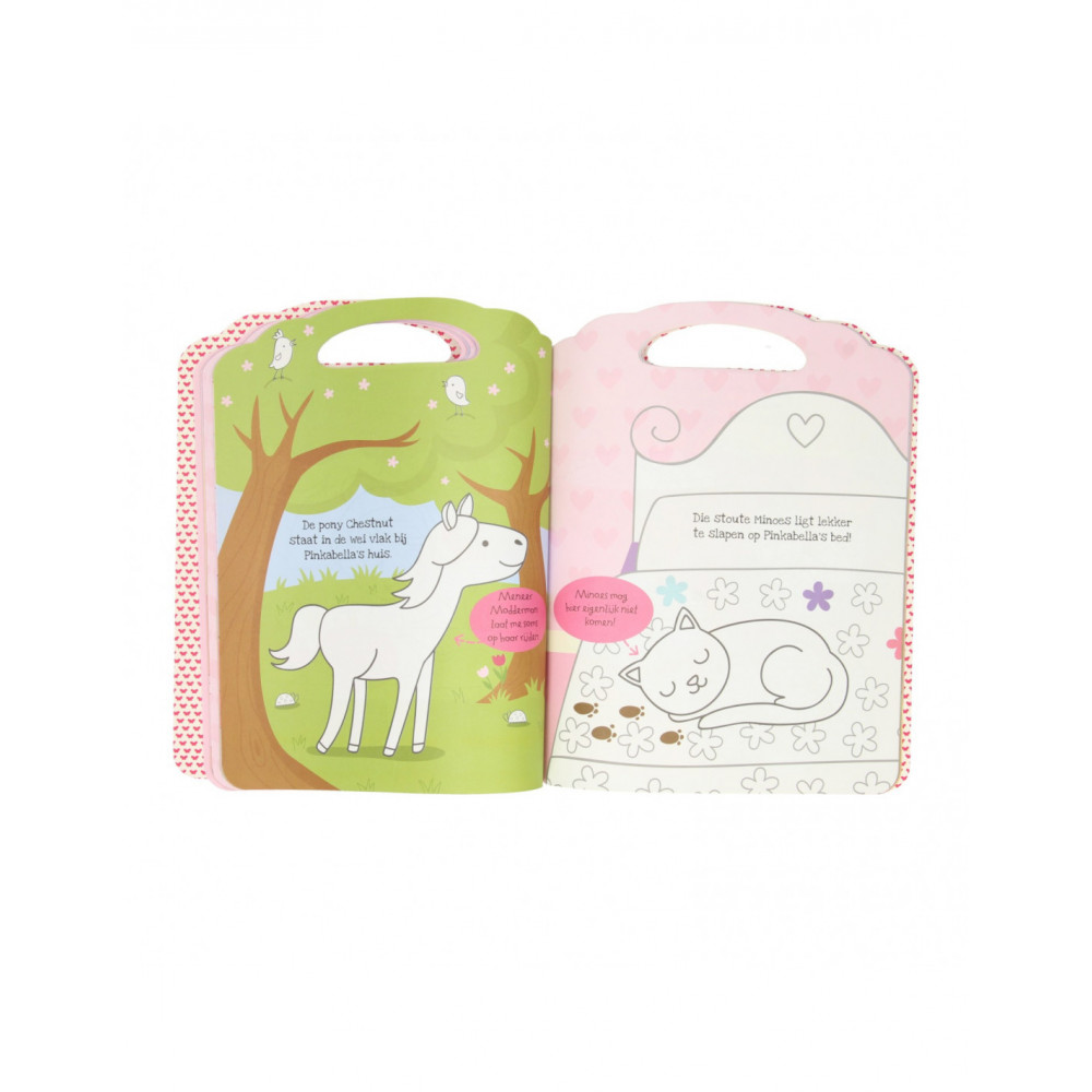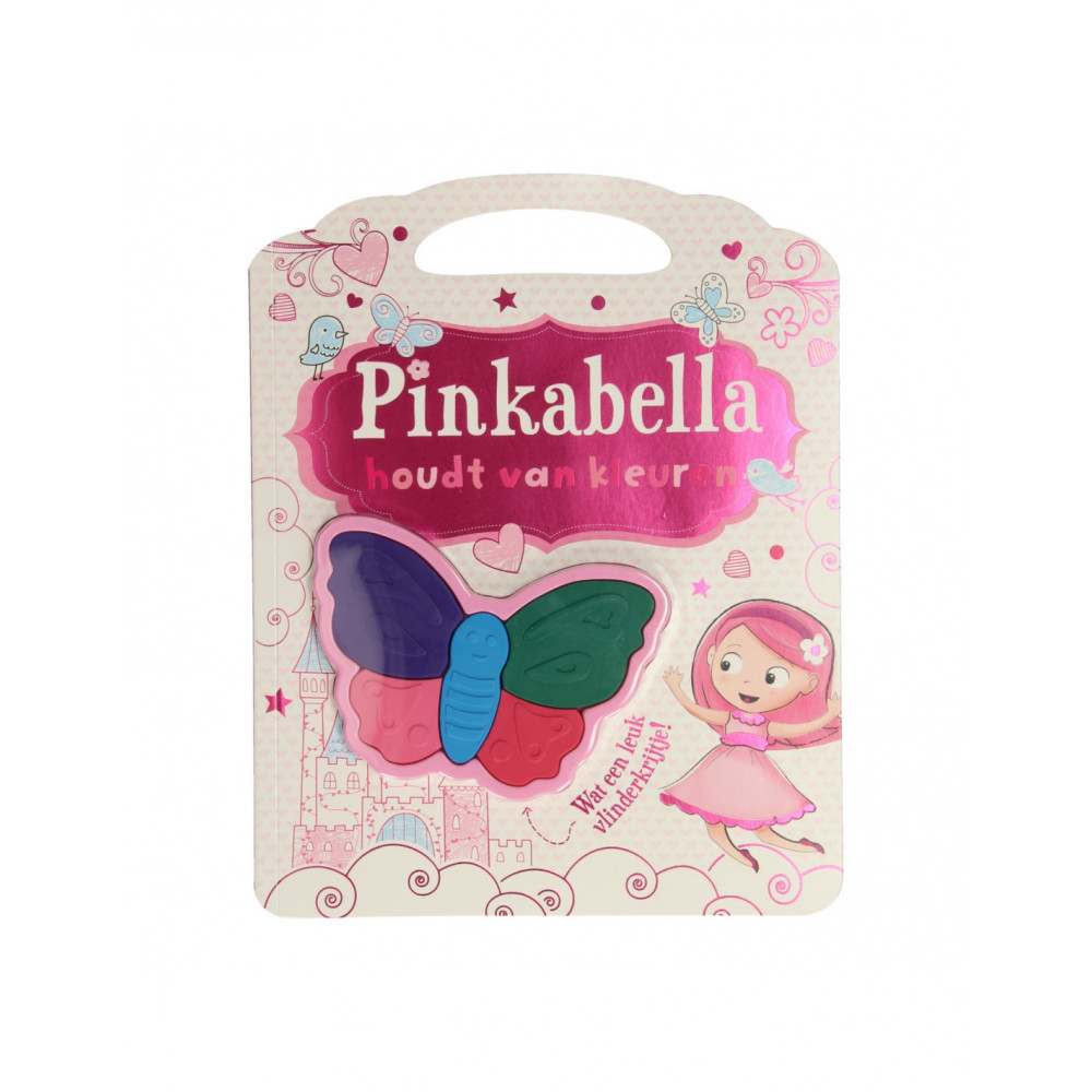 Kleurboek van Pinkabella met kleurplaten en een vlindervormig waskrijtje met 5 kleuren. Geschikt vanaf 3 jaar.