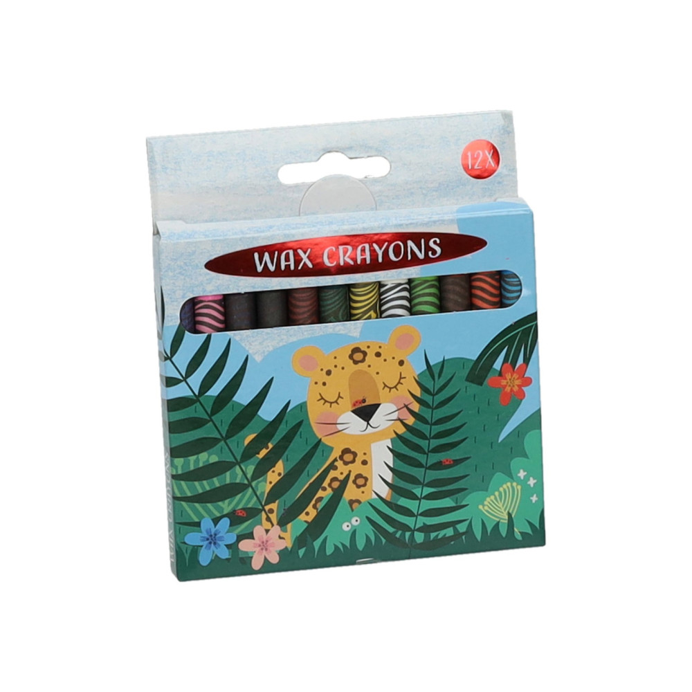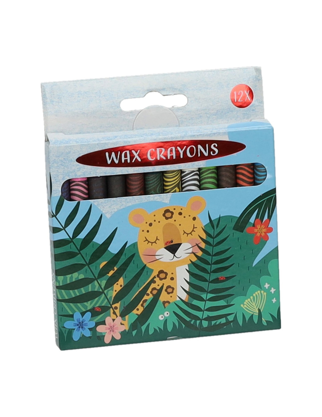 12 gekleurde waskrijtjes in een vrolijke verpakking. Geschikt voor kinderen vanaf 3 jaar.