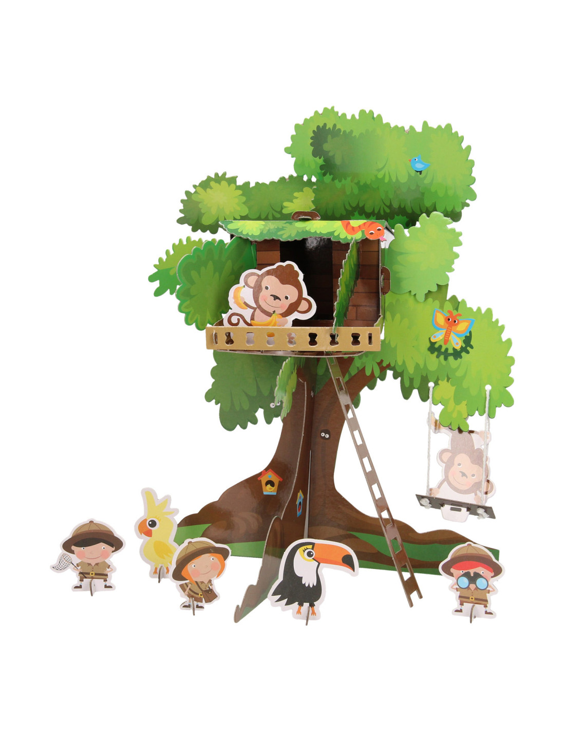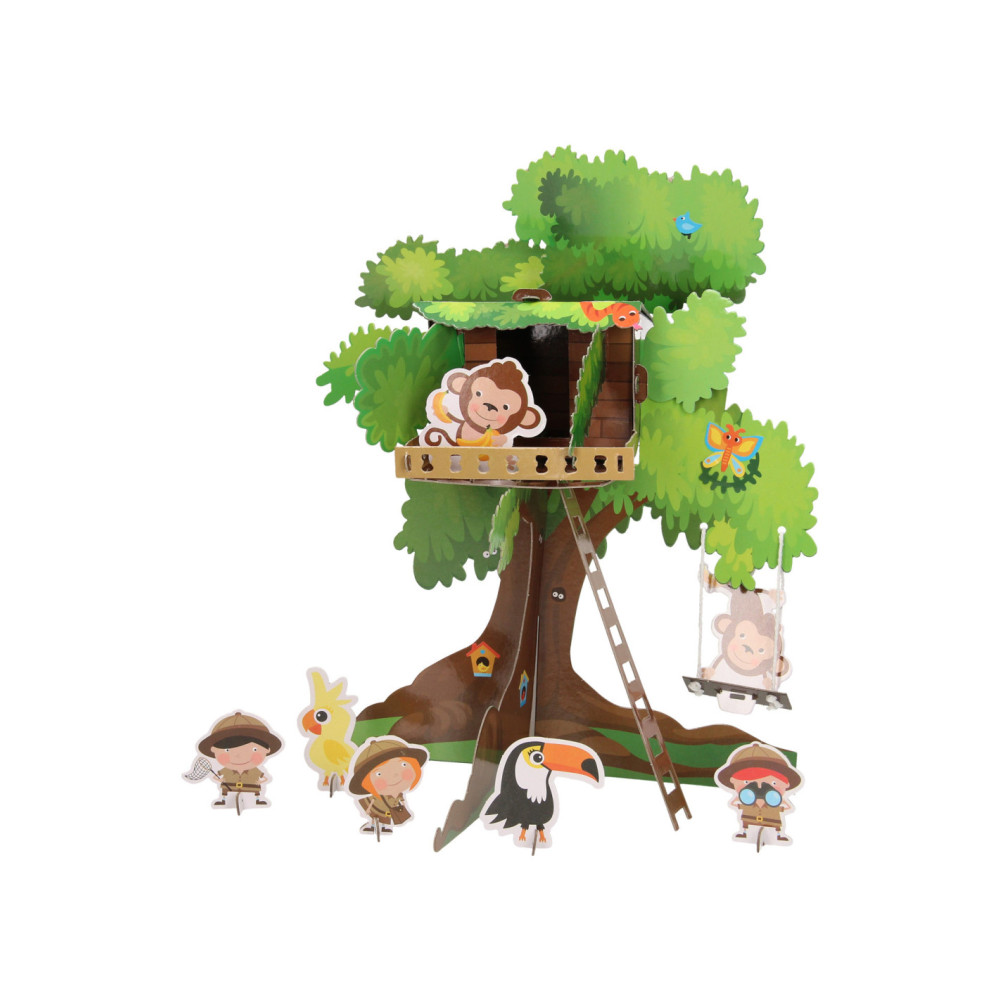 Knutselpakket Boomhut Bouwen. Afmeting: 28 x 30 x 33 centimeter.