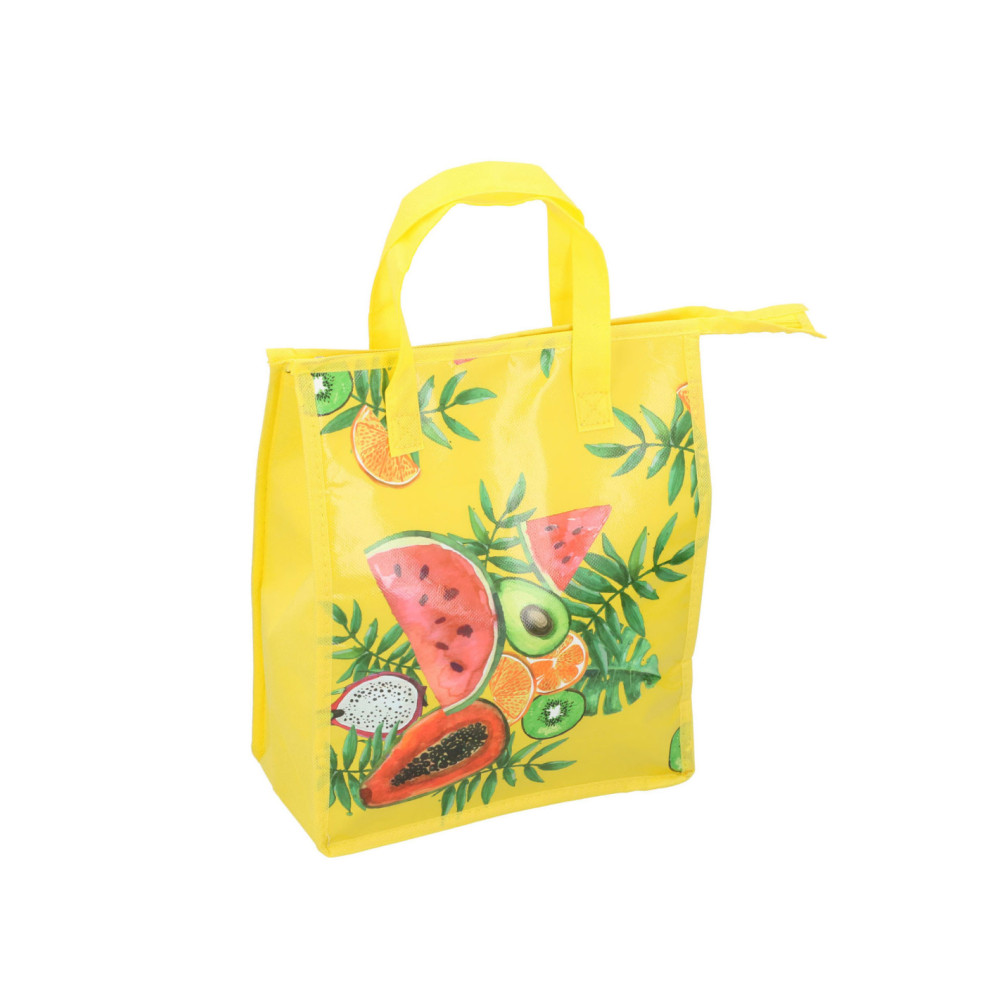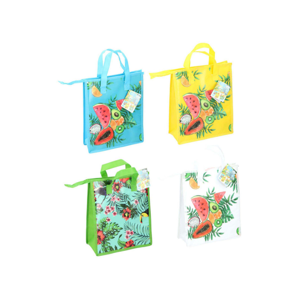 Houd je eten en drinken tijdens een warme dag koel met deze Koeltas Tropical. De koeltas heeft een leuke zomerse opdruk van fruit of tropische bloemen en heeft een inhoud van 8 liter. Genoeg ruimte dus voor al jouw gekoelde drinks en etenswaren.