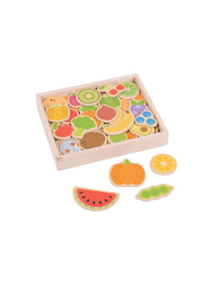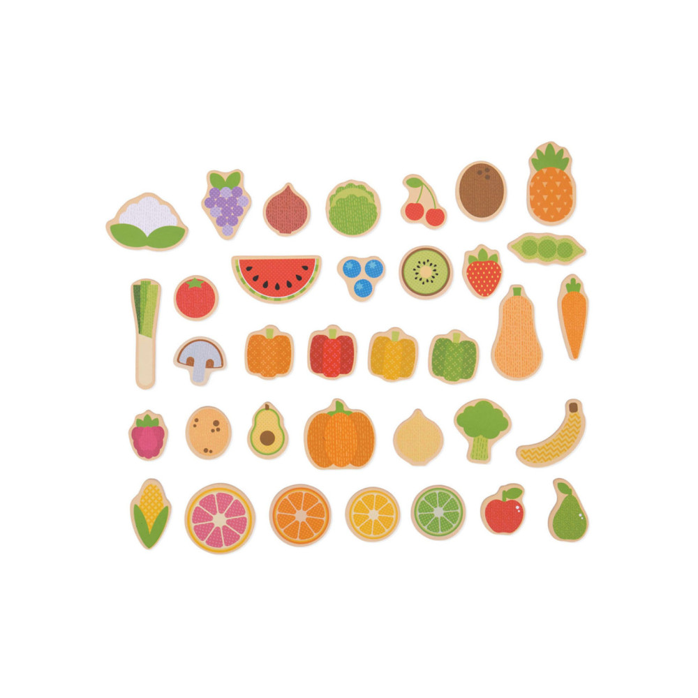 Set van houten groente- en fruitstukken: