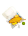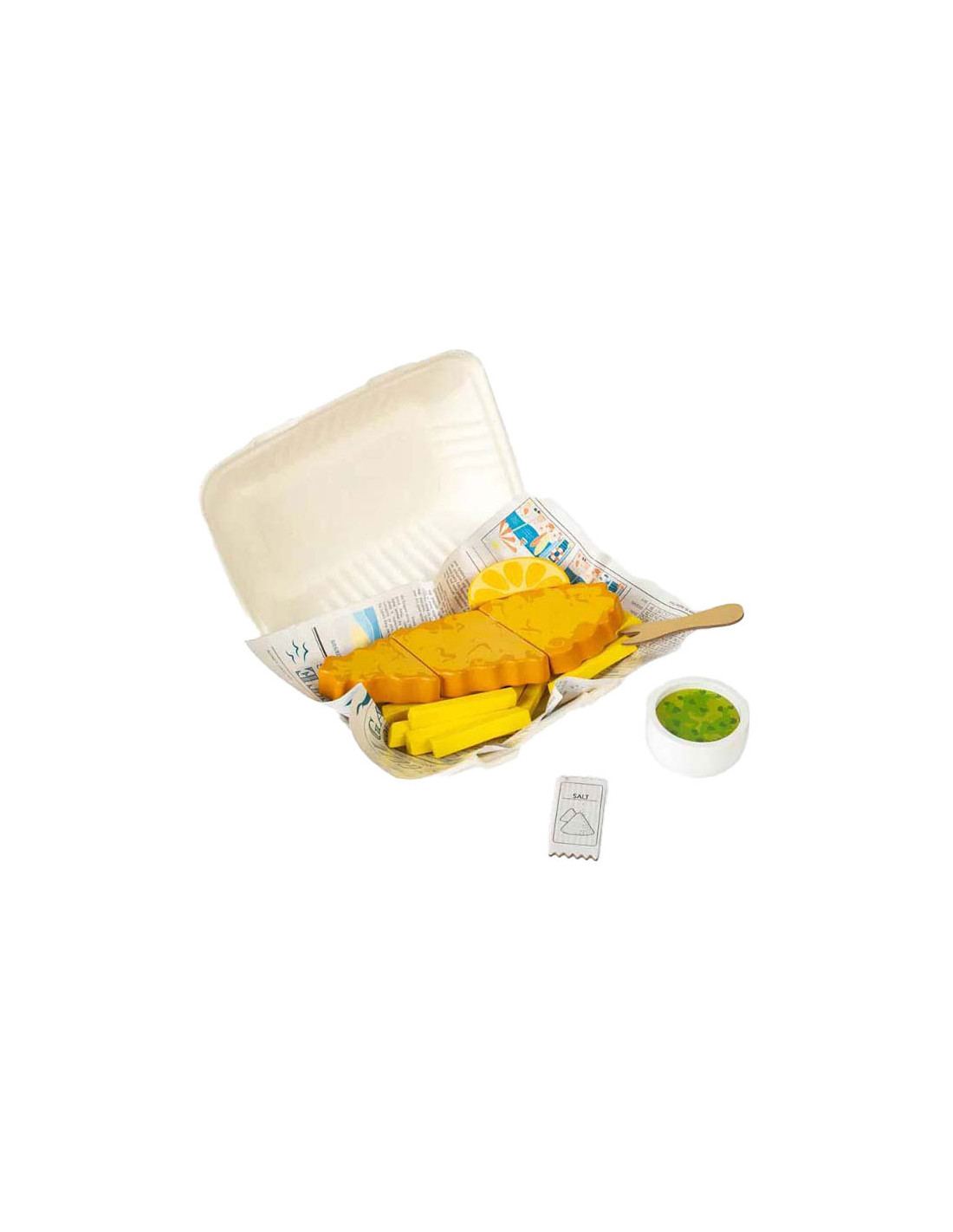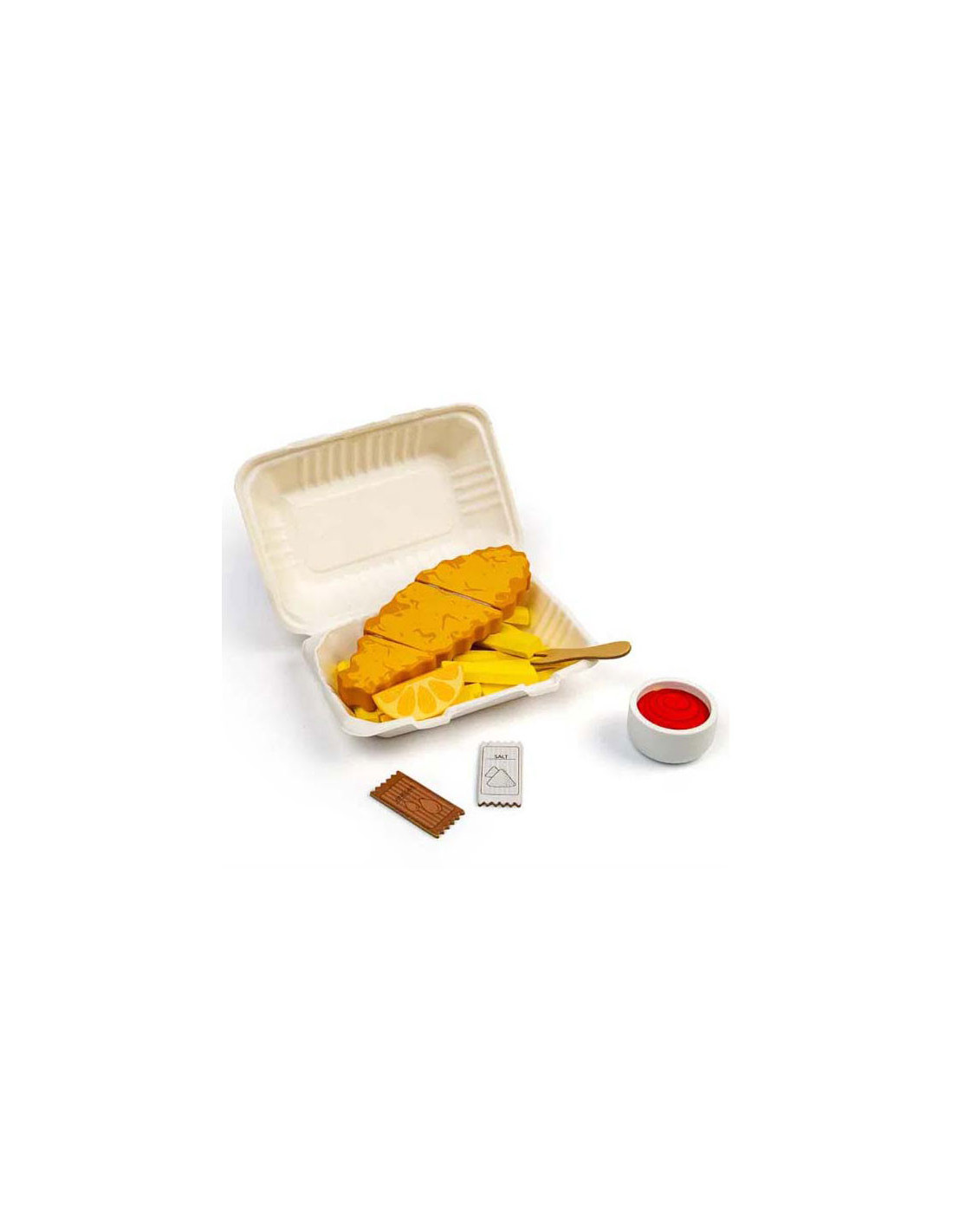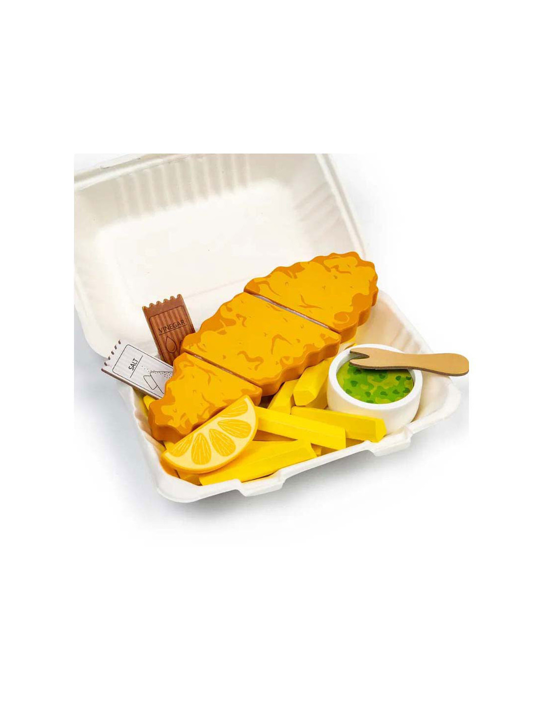 Geniet van knapperige kabeljauw en chips met onze Fish and Chips houten speelvoedselset, geserveerd op een spread van de Gull Gazette! Deze interactieve krant bevat speelse verhalen en activiteiten om een extra element aan de speeltijd toe te voegen. De set wordt ook geleverd met een kom met mushy peas, een partje citroen, een zoutzakje en een afhaaldoos, en de kabeljauw is verdeeld in drie stukken zodat kinderen hem kunnen snijden met de houten chipvork.