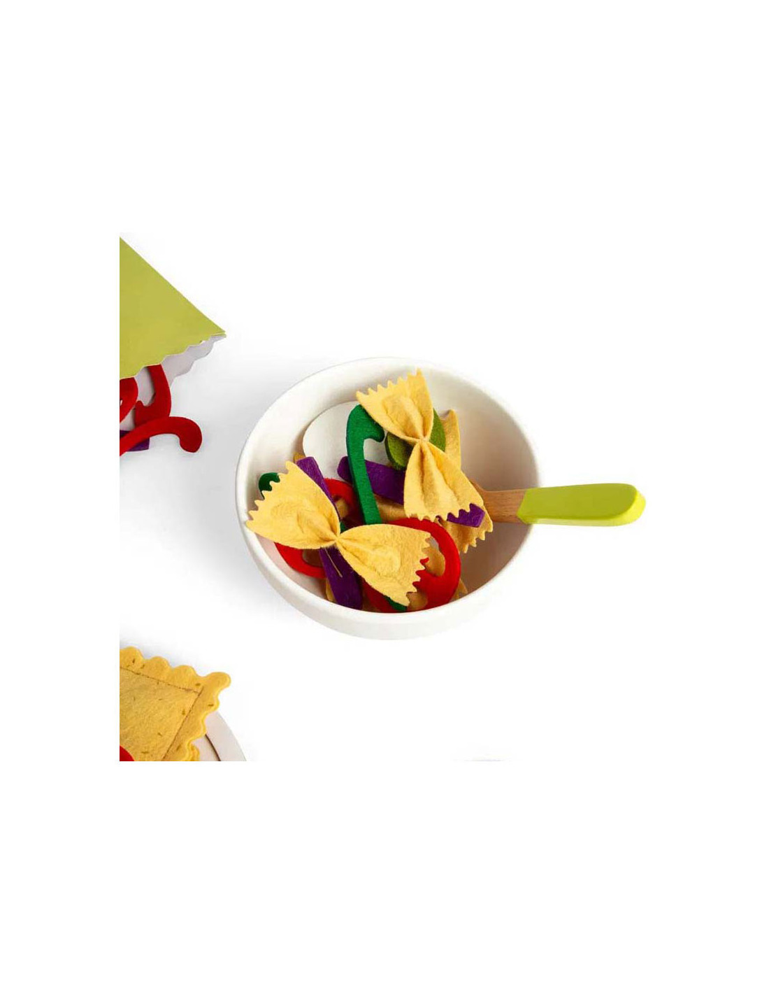 Onze speelvoedselpastaset is gemaakt van premium kwaliteit en duurzaam FSC®-gecertificeerd hout en gekleurd met niet-giftige verf en lakken. Voldoet aan de huidige Europese veiligheidsnormen. 6 cm H x 17 cm B x 14 cm D. Geschikt voor 18+ maanden.