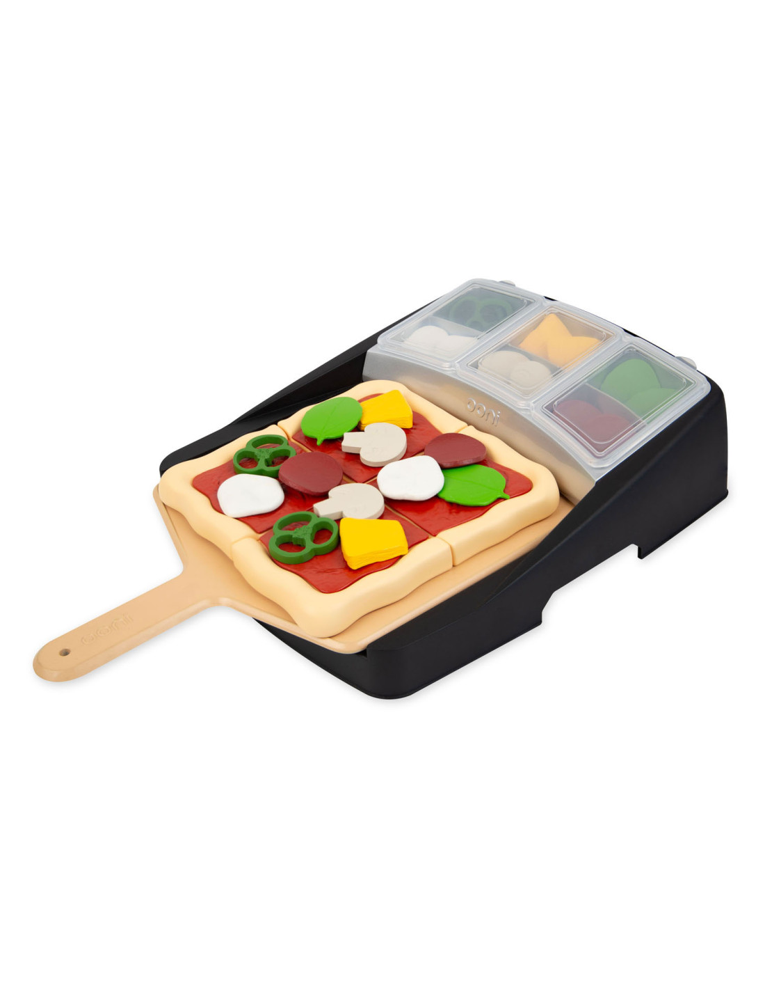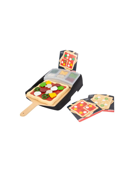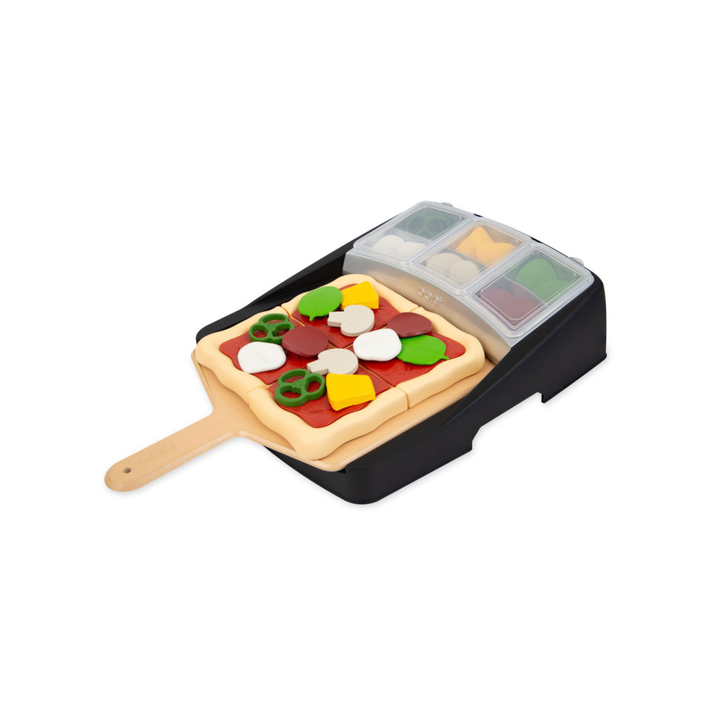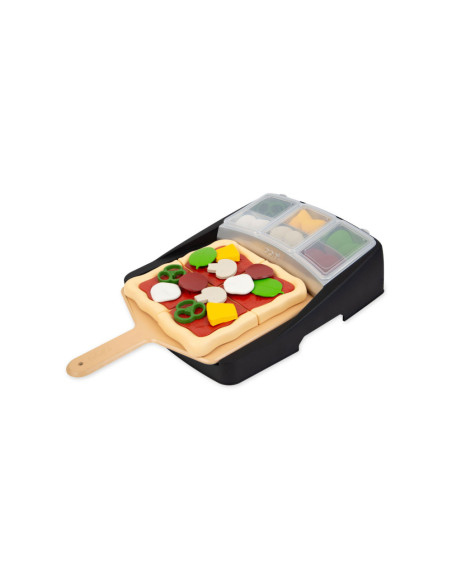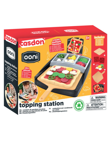 Je jonge chef-kok zal dol zijn op dit pizza topping station, compleet met afneembaar topping-dekselgedeelte, net als in een echte pizzeria! Met behulp van de Ooni pizza peel, ontworpen om het gevoel van houten schillen na te bootsen, kunnen ze hun vierdelige vierkante pizza klaarmaken voor een aantal verrukkelijke toppings.