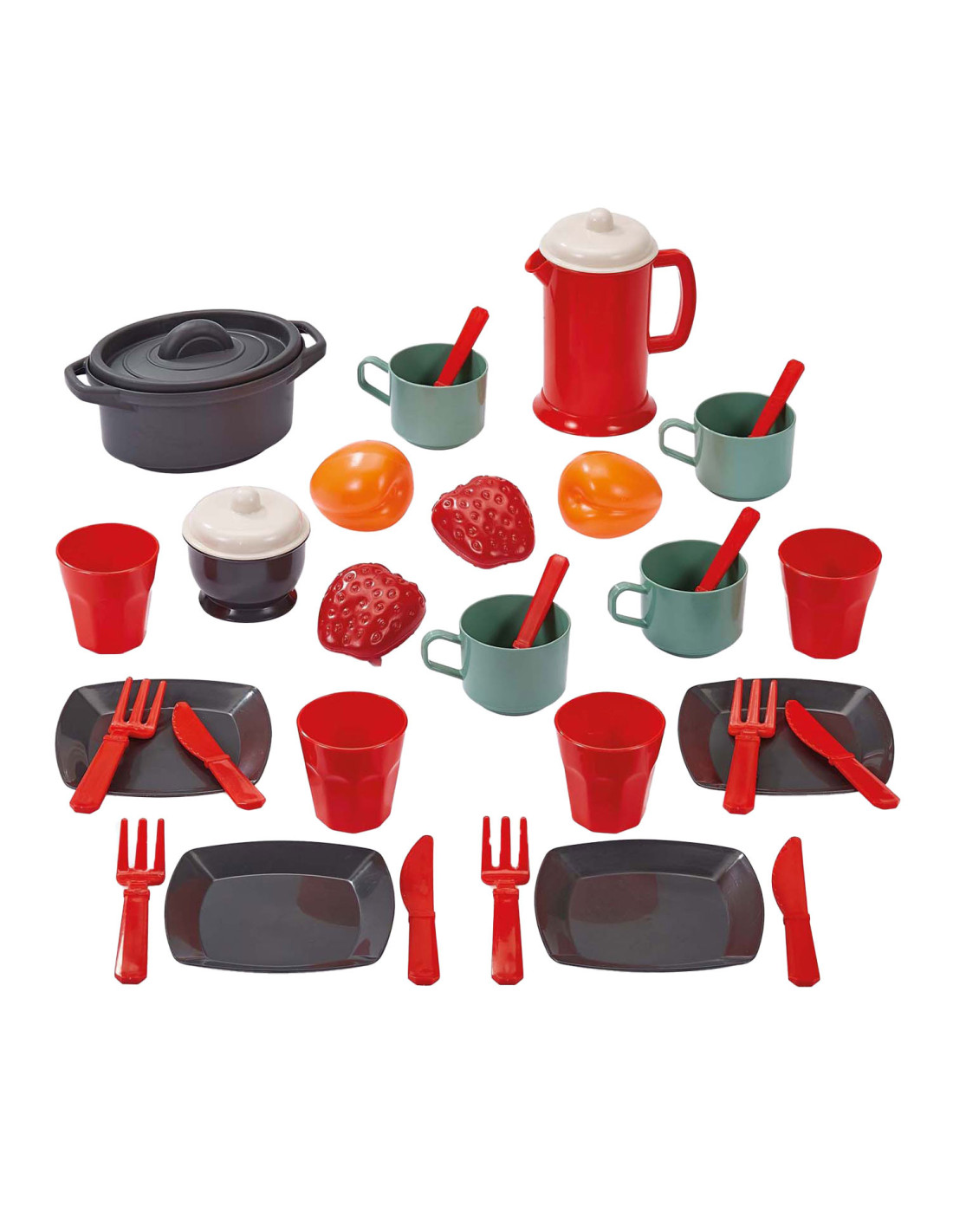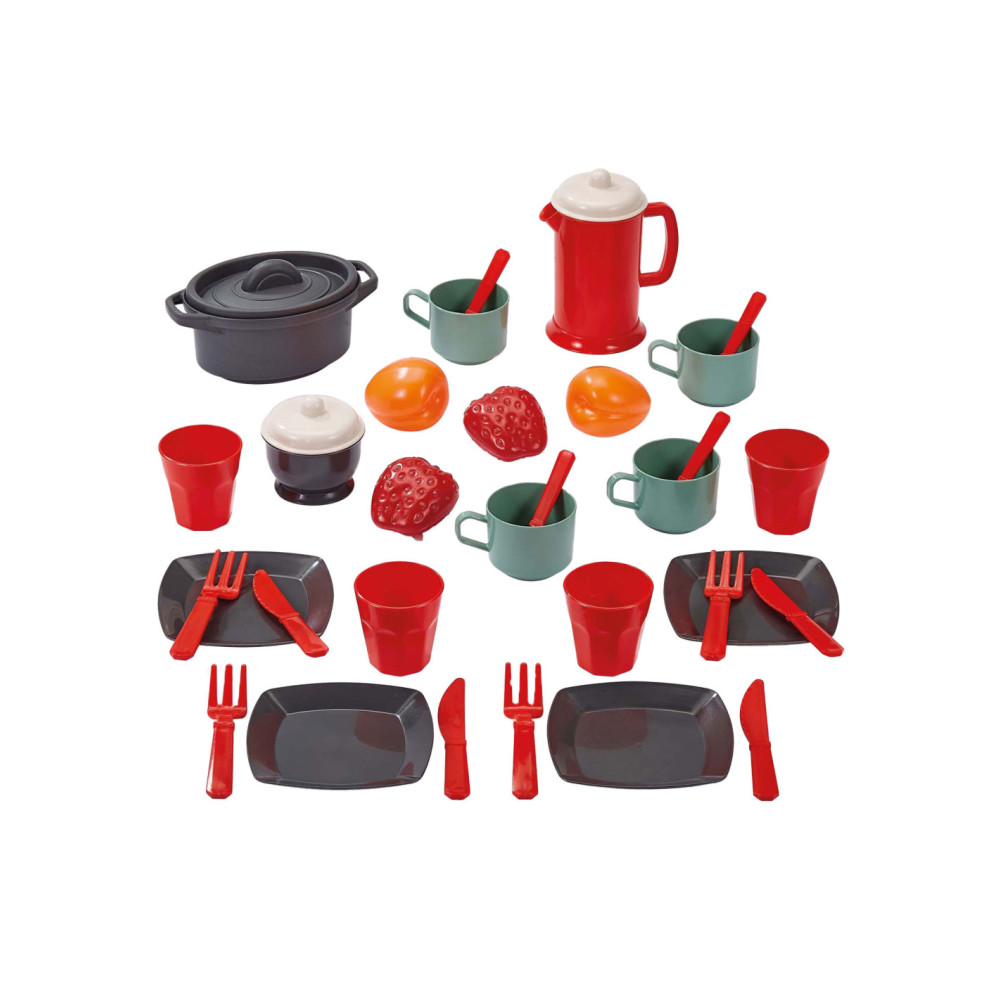 Ecoiffier eetset met speeleten. De set bestaat uit 34 onderdelen en is geschikt voor kinderen vanaf 18 maanden.