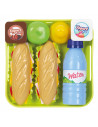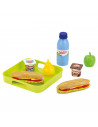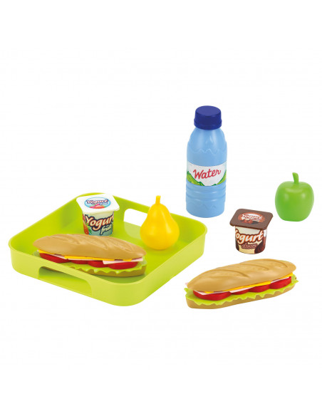 Deze mooie set bevat 2 sandwiches, een flesje water, 2 pakjes yoghurt een appel en een peer én is voorzien van een dienblad.