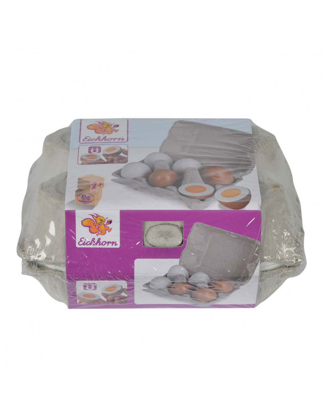 De eitjes worden geleverd per 6 stuks (3 witte en 3 bruine) in een echte eierdoos.