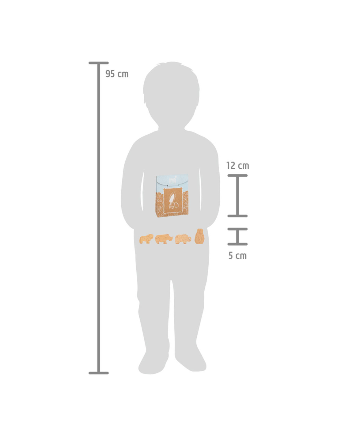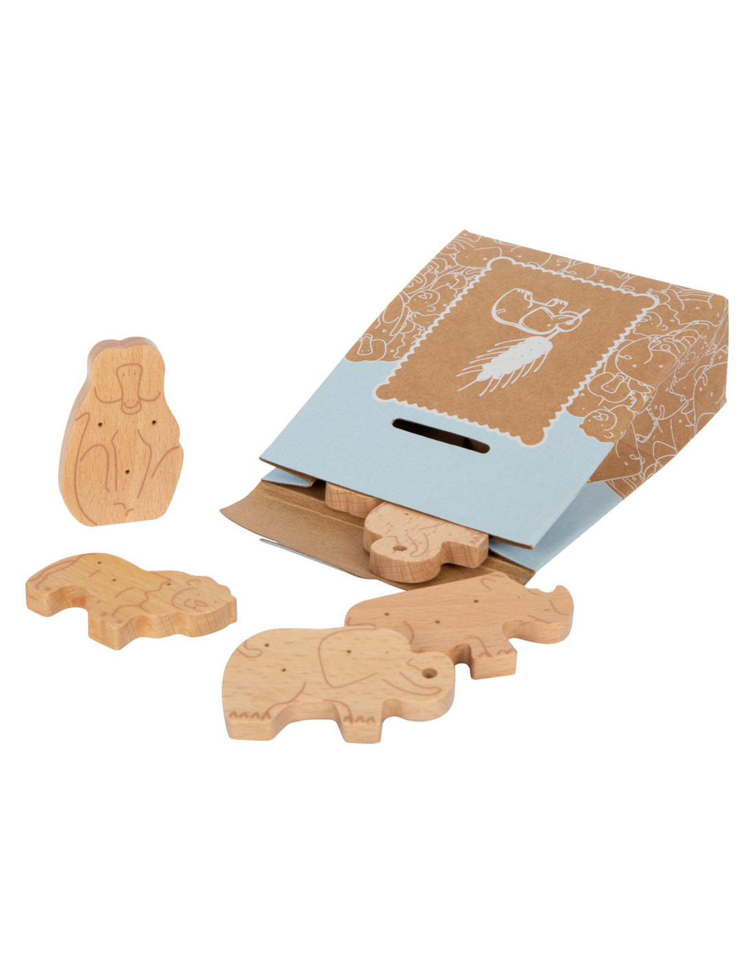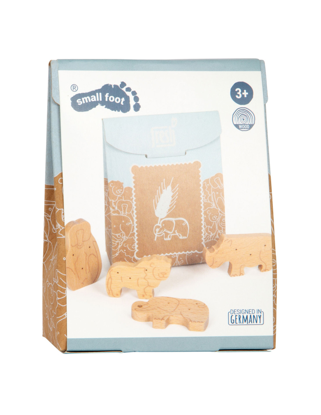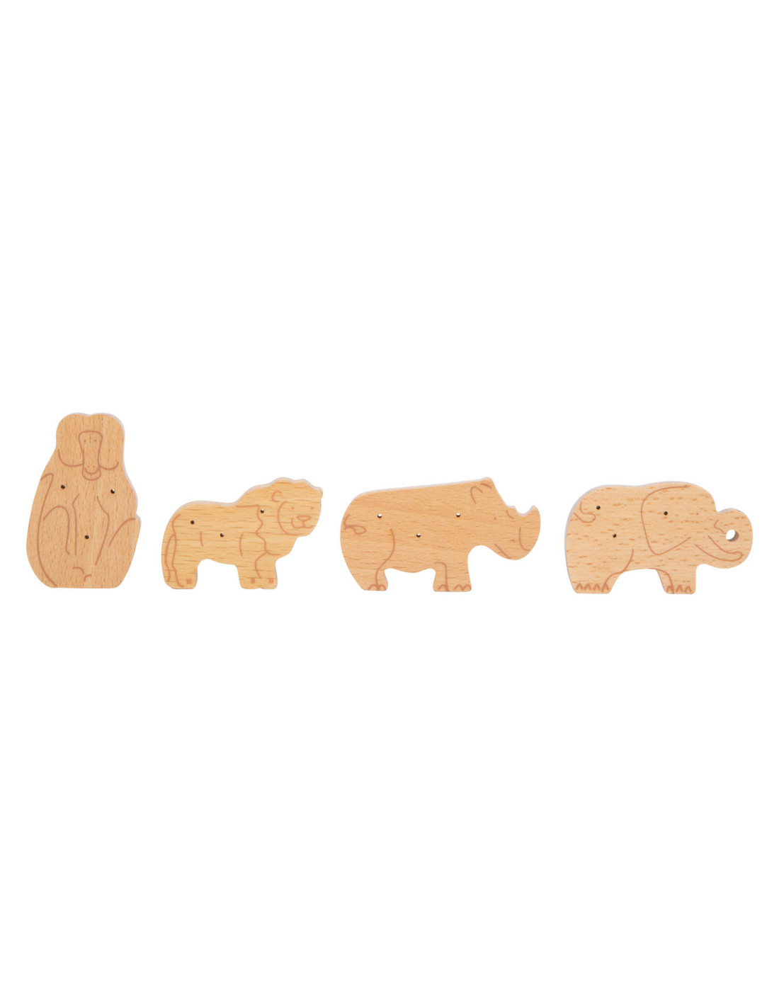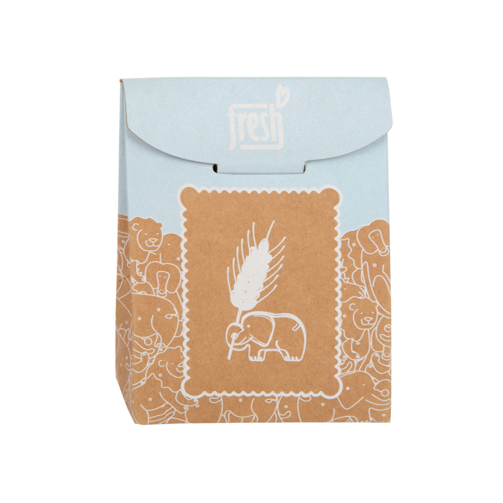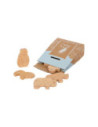 Enkele savannedieren voor het koekjesassortiment in de speelwinkel! Deze 8 robuuste dieren crackers van massief hout zijn een echte verrijking voor het snoepassortiment in de speelwinkel! Deze populaire koekjes zien er gegarandeerd geweldig uit in het schap in hun opvouwbare doos van natuurlijk karton. De eenvoudige illustraties op de verpakking zijn goed te begrijpen voor jonge kinderen die nog niet kunnen lezen. Het is praktisch en leerzaam: de inhoud staat in plaatjes afgebeeld op de achterkant van de crackersdoos. Door het natuurlijk ogende, realistische uiterlijk van de dierencrackers (2 leeuwen, 2 apen, 2 neushoorns, 2 olifanten) zullen ze een hit worden tijdens het fantasievolle rollenspel in de speelwinkel en speelkeuken! Langdurig speelplezier met houten speelgoedvoeding gegarandeerd.