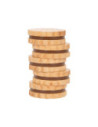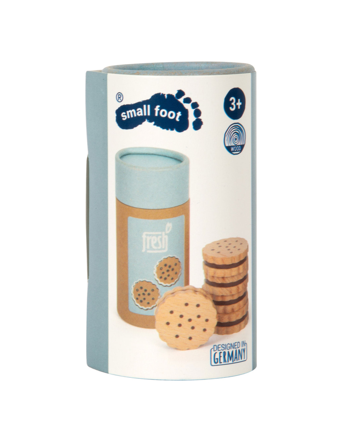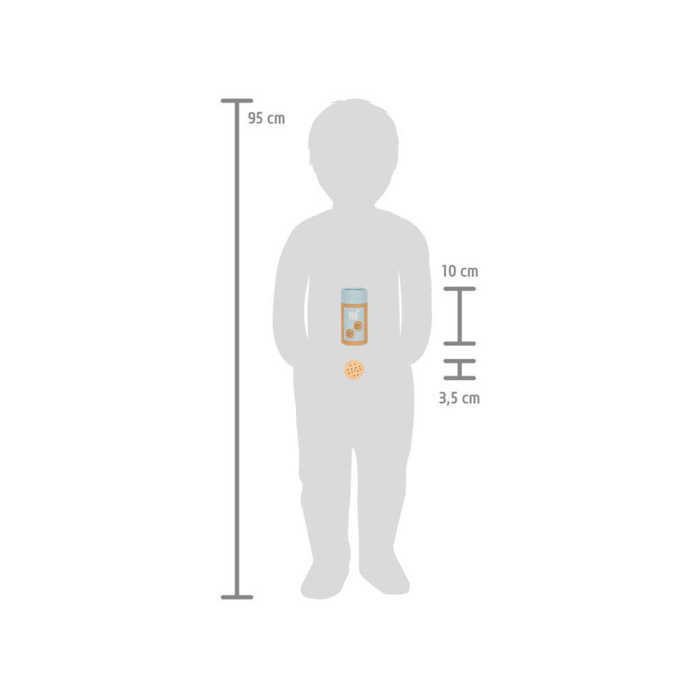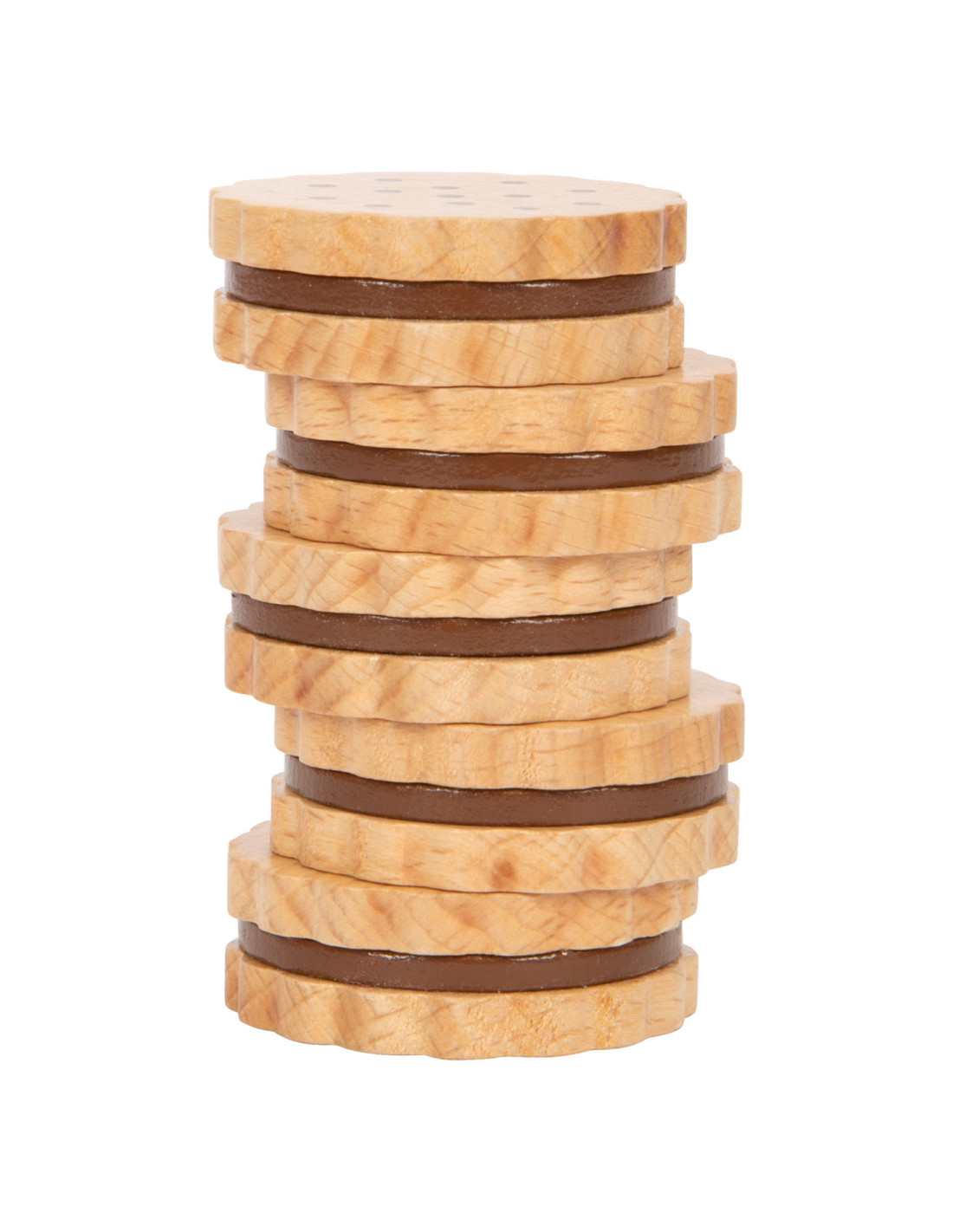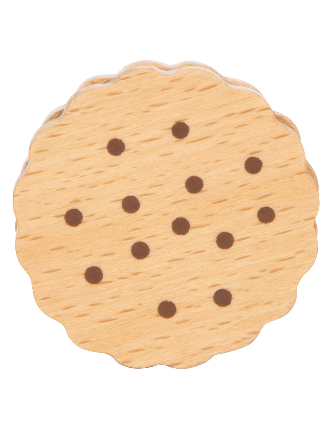 Voor kleine koekjesmonsters! Deze 5 robuuste sandwichkoekjes van hout zijn een verrijking voor het snoepassortiment in iedere speelwinkel! Deze koekjes kunnen perfect gepresenteerd worden in de stevige, hersluitbare cilinderdoos van natuurkarton. Door de natuurlijke, realistische uitstraling van deze boterhamkoekjes zijn ze een hit voor het rollenspel in de speelwinkels en speelkeuken! Langdurig speelplezier met houten speelgoedvoeding gegarandeerd.