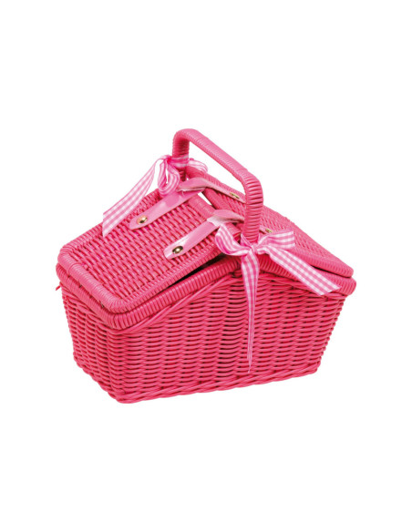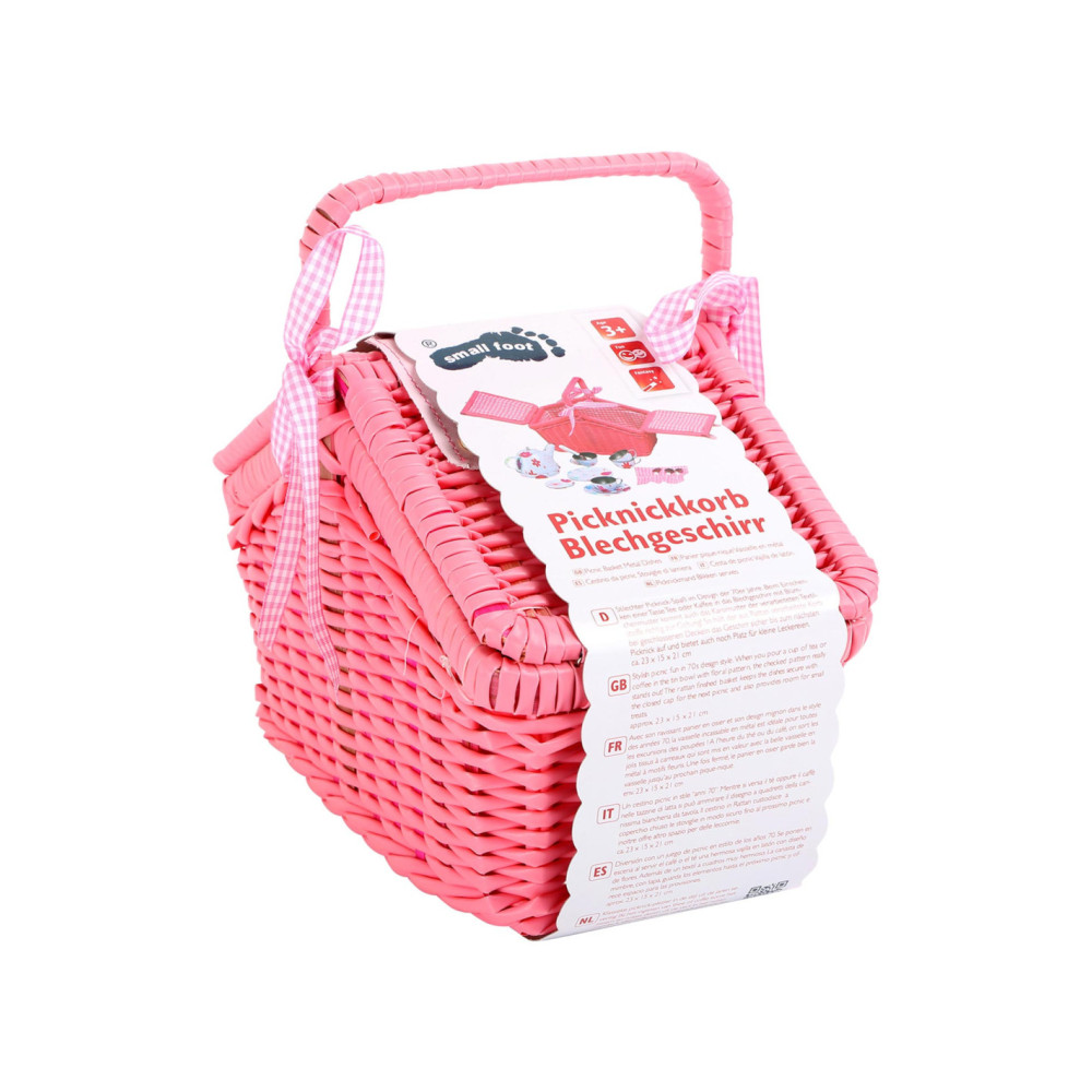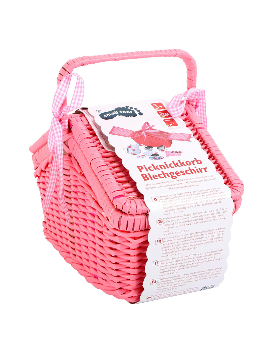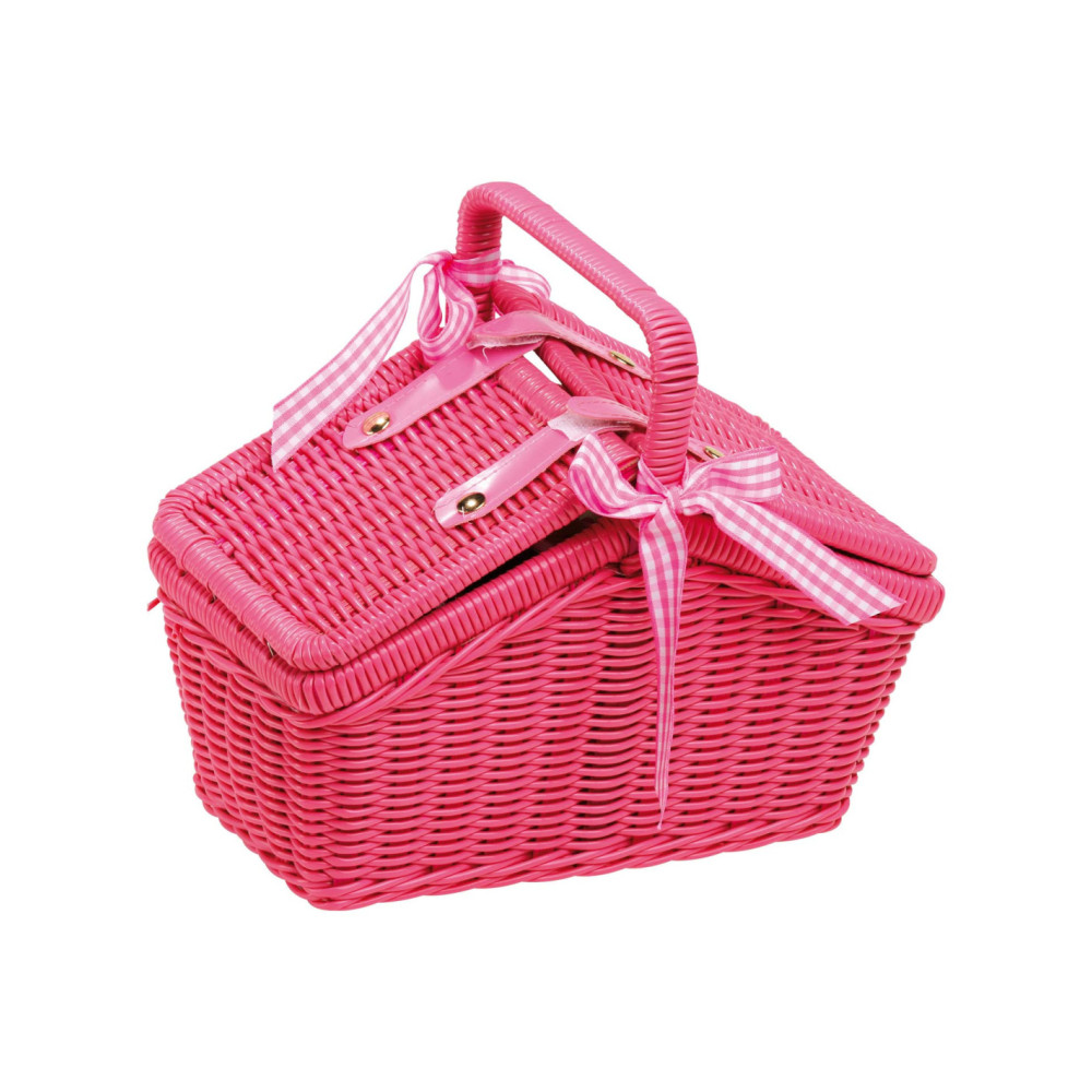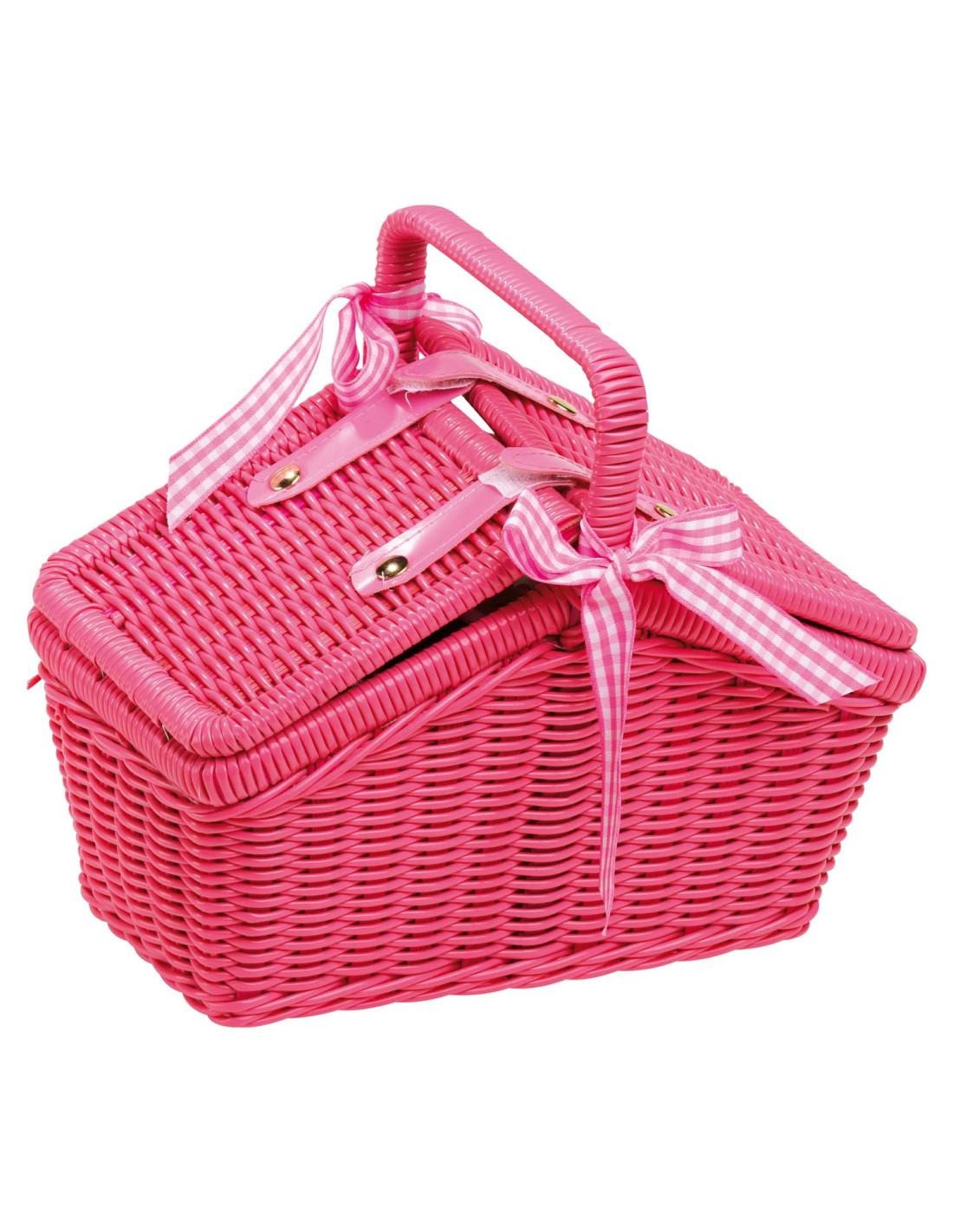 Neem je favoriete poppen en knuffels mee voor een gezellige picknick in het park met deze picknickmand met servies. Vul de mand aan met wat lekkers en je bent klaar om op pad te gaan! Wandel naar de tuin, stal het eten en het servies uit op de picknicktafel en genieten maar! De openklapbare picknickmand van roze riet bevat een theekan, kopjes, schoteltjes en bordjes van blik en 4 lepels in een handig stoffen servet. Spelen met de picknickmand stimuleert de ontwikkeling van fantasie en sociale vaardigheden.