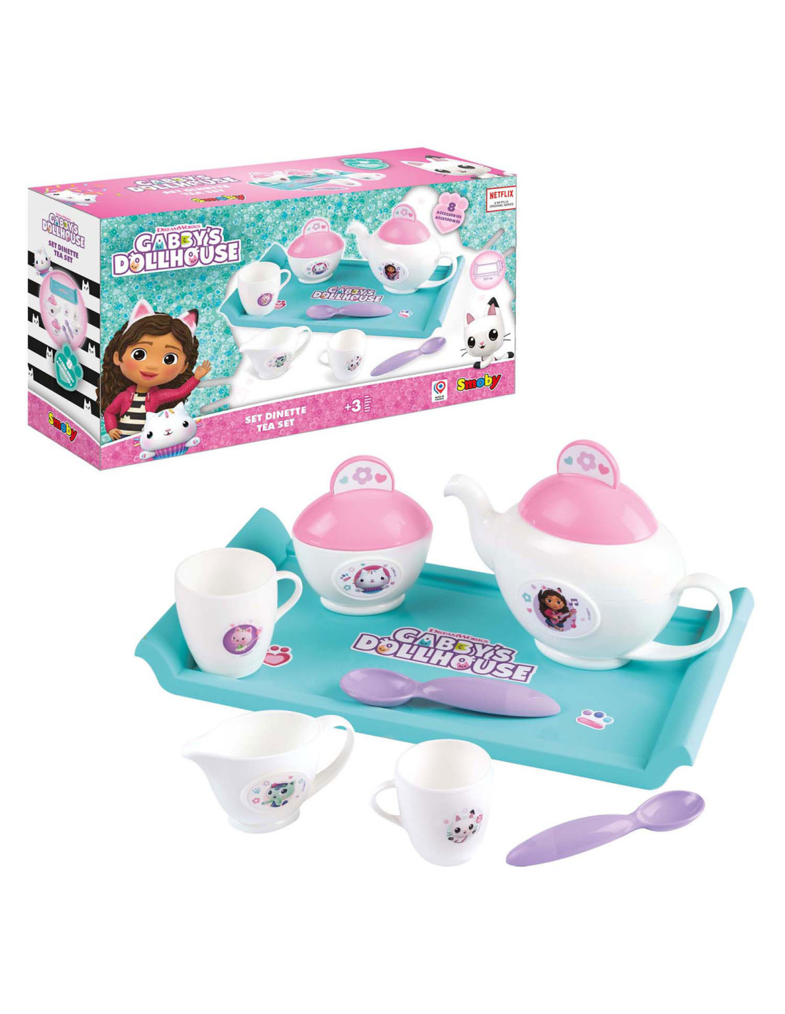 Gabby's Poppenhuis theeset. Geschikt voor kinderen vanaf 3 jaar. De set bestaat uit 8 onderdelen.